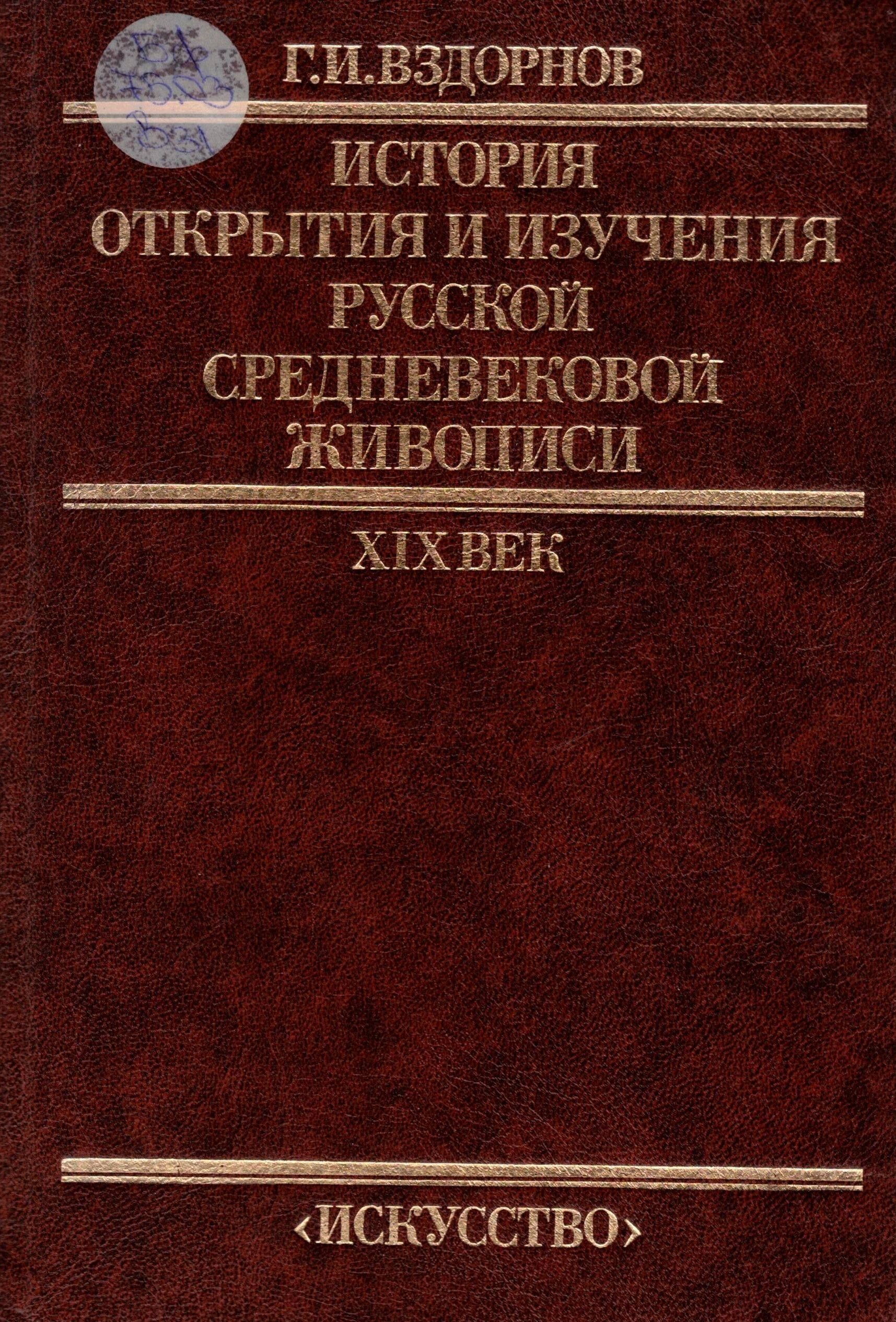 Вздорнов, Герольд. История открытия и изучения русской средневековой живописи ХIХ век / Герольд Иванович Вздорнов . - Москва : Искусство, 1986 . - 384 с. ; 22 см