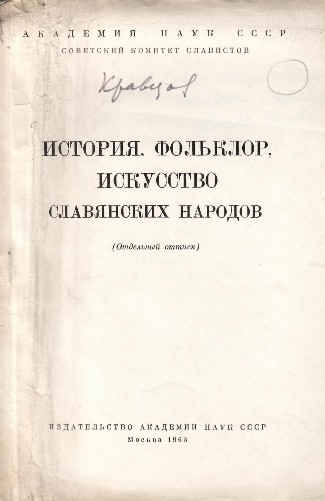 История, фольклор, искусство славянских народов : (Отдельный оттиск) / Академия наук СССР, Советский комитет славистов. – Москва : Издательство Академии наук СССР, 1963.