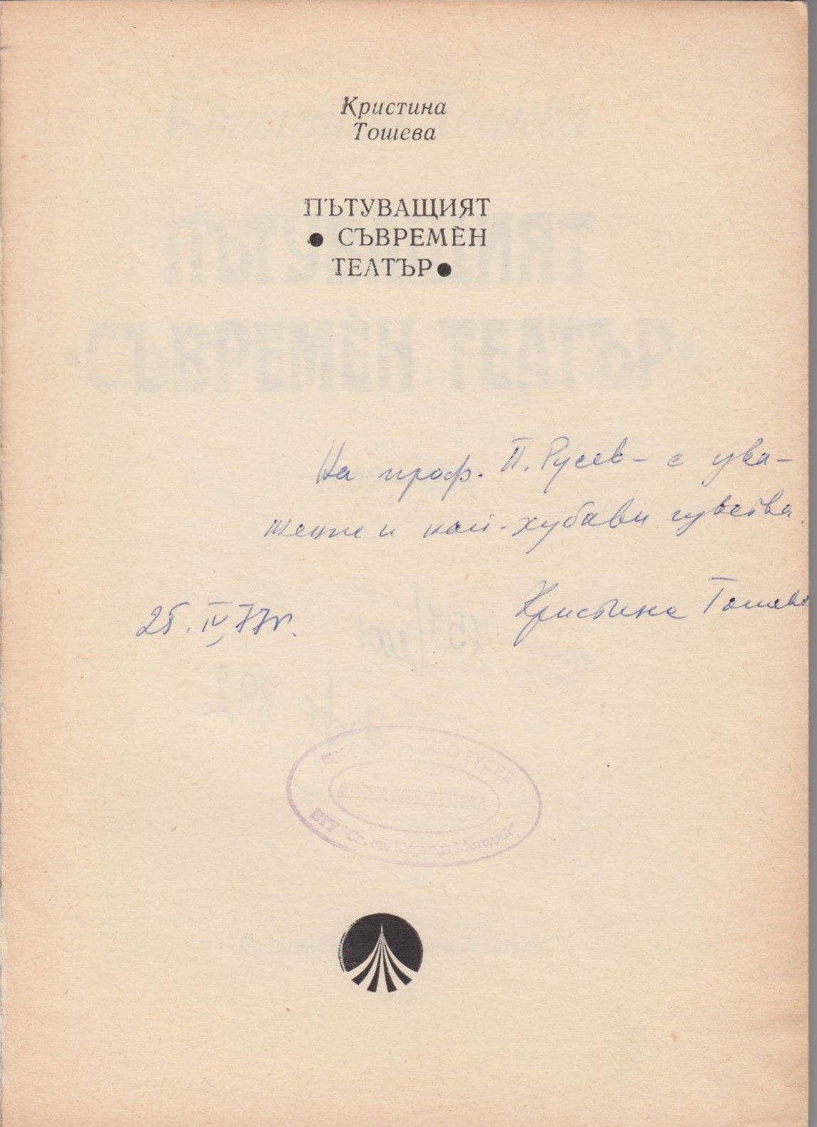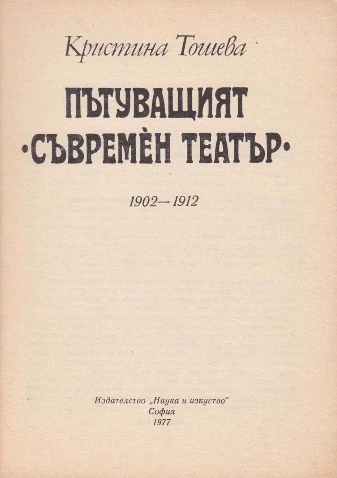 Тошева, Кристина. Пътуващият "Съвременен театър" : : [Моногр.] :1902-1912 / Кристина Д. Тошева. - София : Наука и изкуство, 1977. - 151 с., 8 л. ил. ; 20 см.