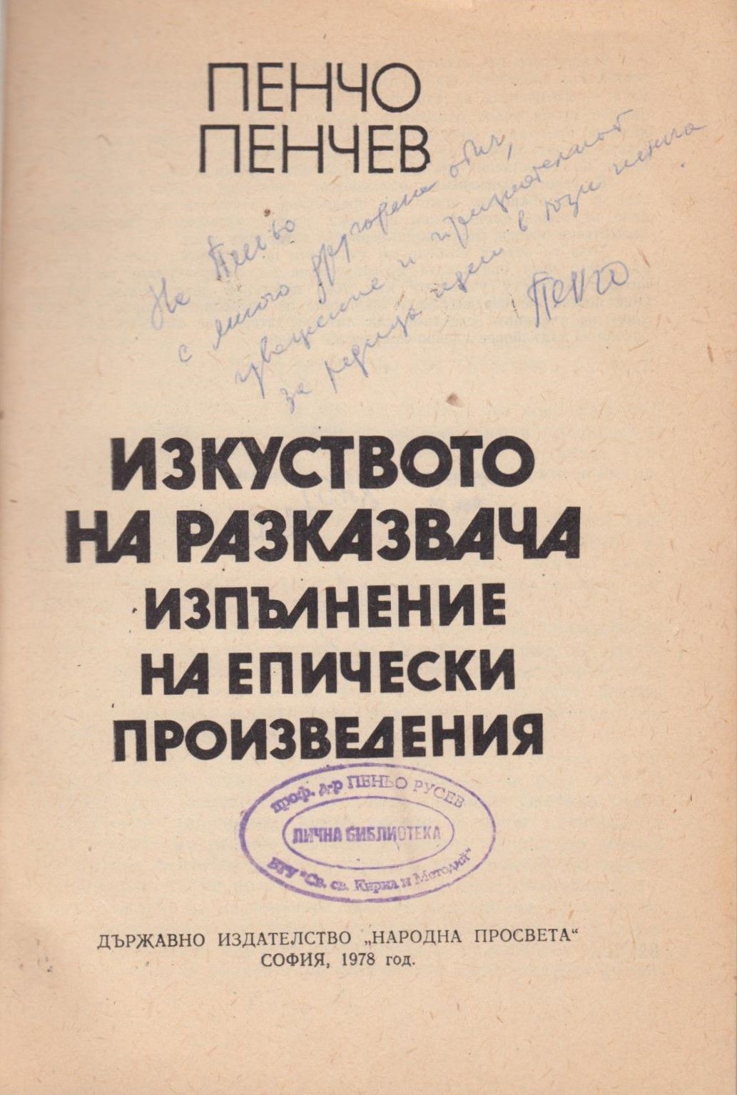 Пенчев, Пенчо Д. Изкуството на разказвача : Изпълнение на епически произведения / Пенчо Пенчев. - София : Нар. просв., 1978. - 159 с. ; 20 см.