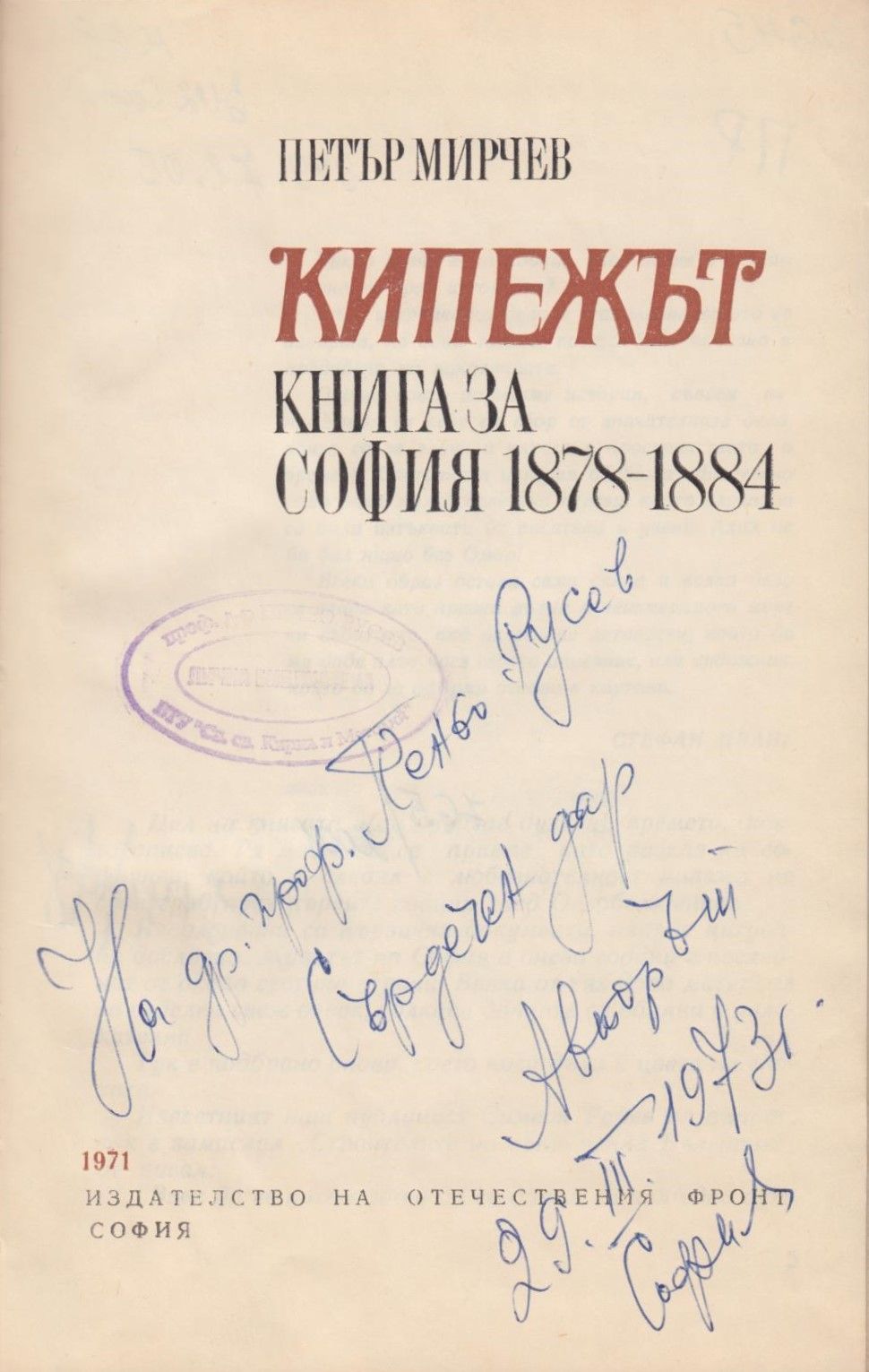 Мирчев, Петър. Кипежът : Книга за София / Петър Мирчев. - София : ОФ, 1971. - 199 с. ; 25 см.