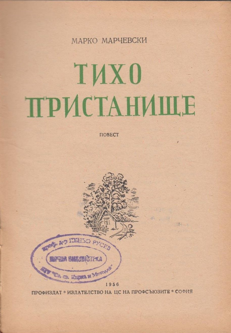 Марчевски, Марко. Тихо пристанище : Повест / Марко Марчевски . - София : Профиздат, 1956 . - 256 с. ; 17 см.