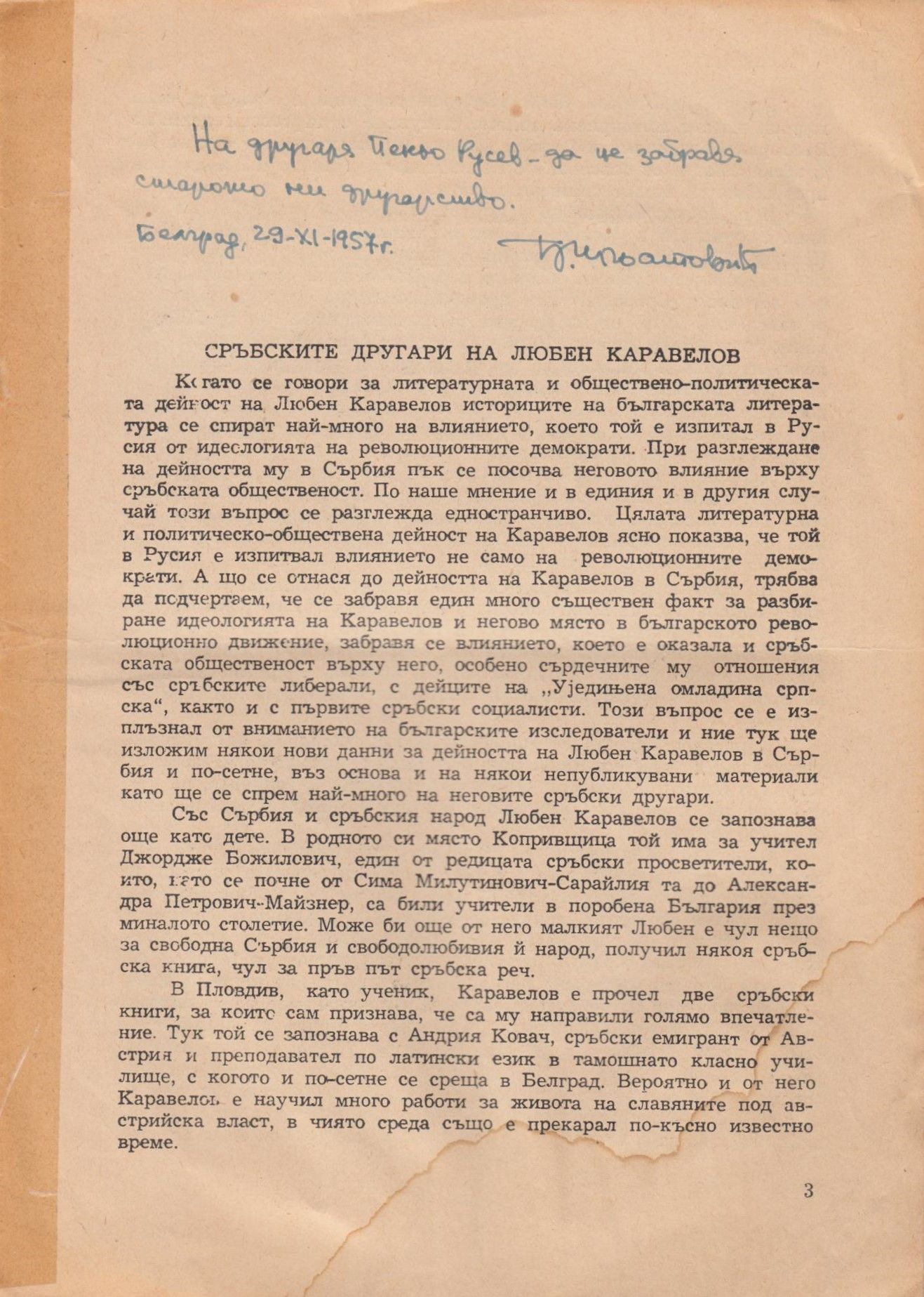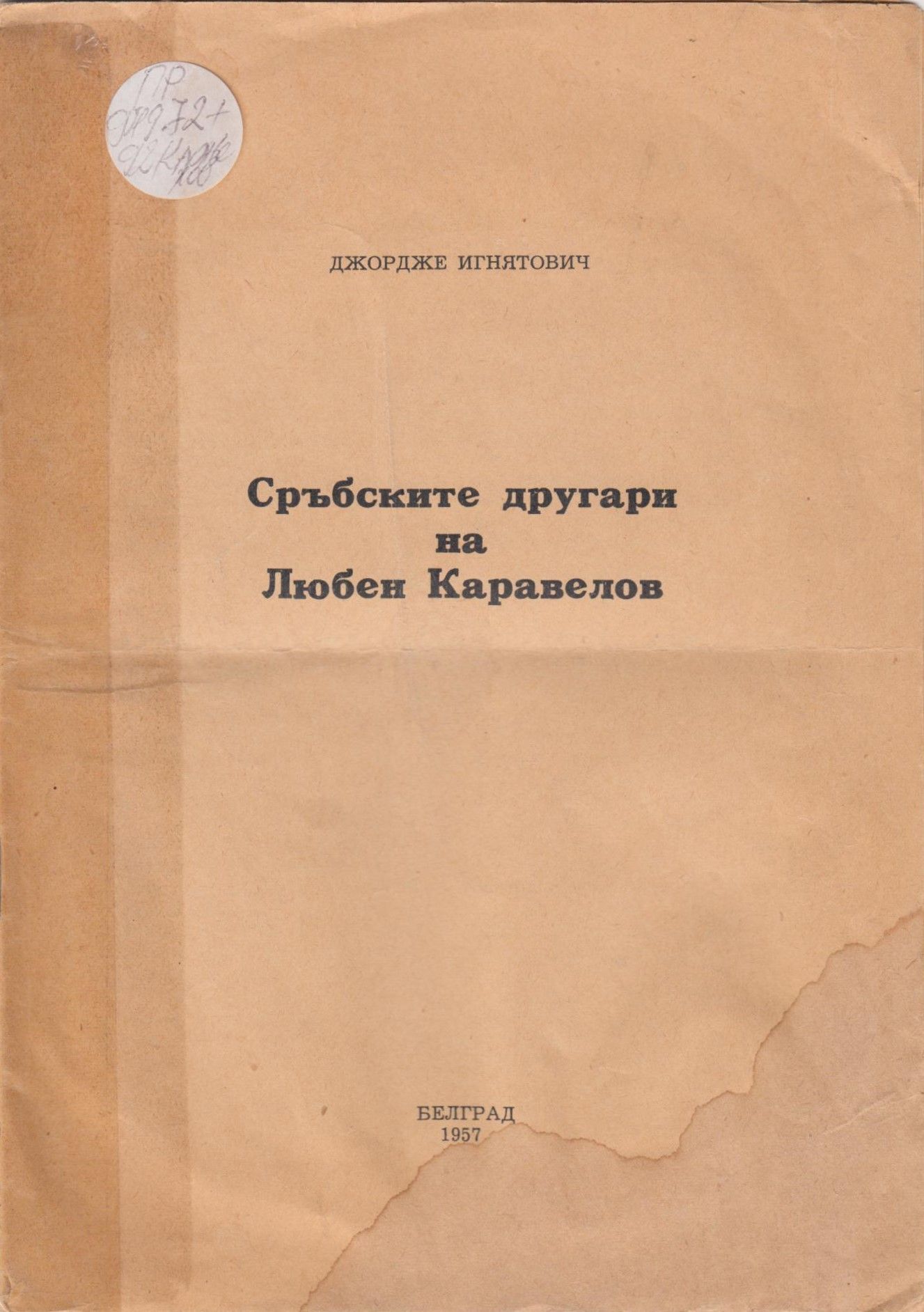 Игнятович, Джордже. Сръбските другари на Любен Каравелов / Джордже Игнятович. - Белград 1957. - с. 3-14 ; 24 см. * Заб. Отпеч. от сб. "Октомри", изд. на "Глас на българите в Югославия". - 1957. - с. 3-14