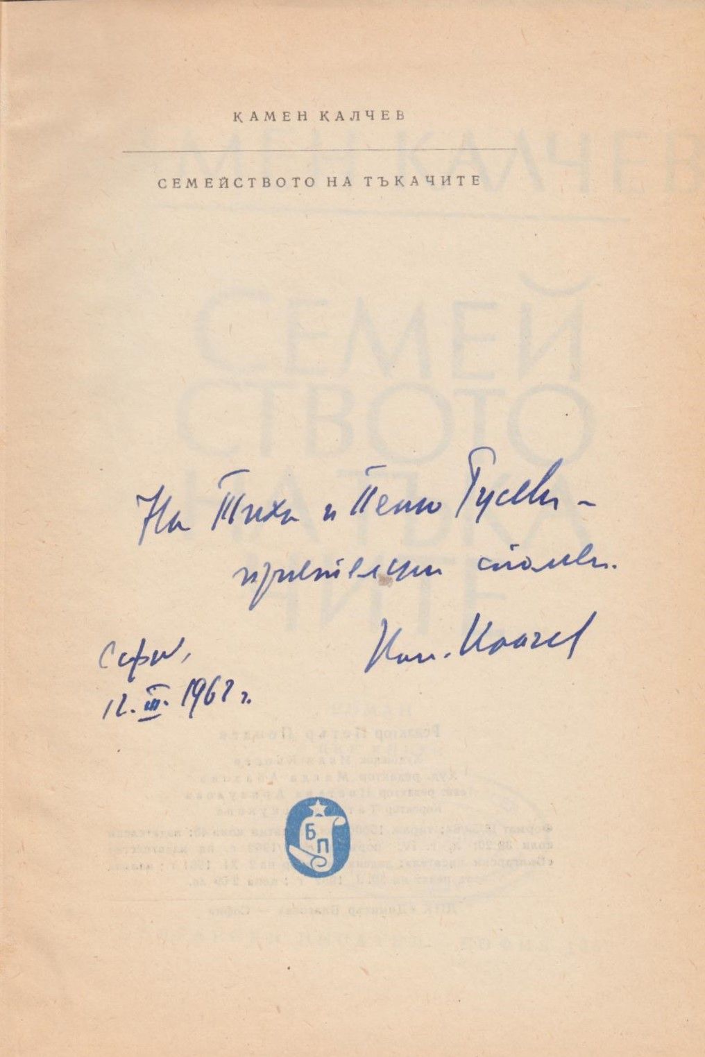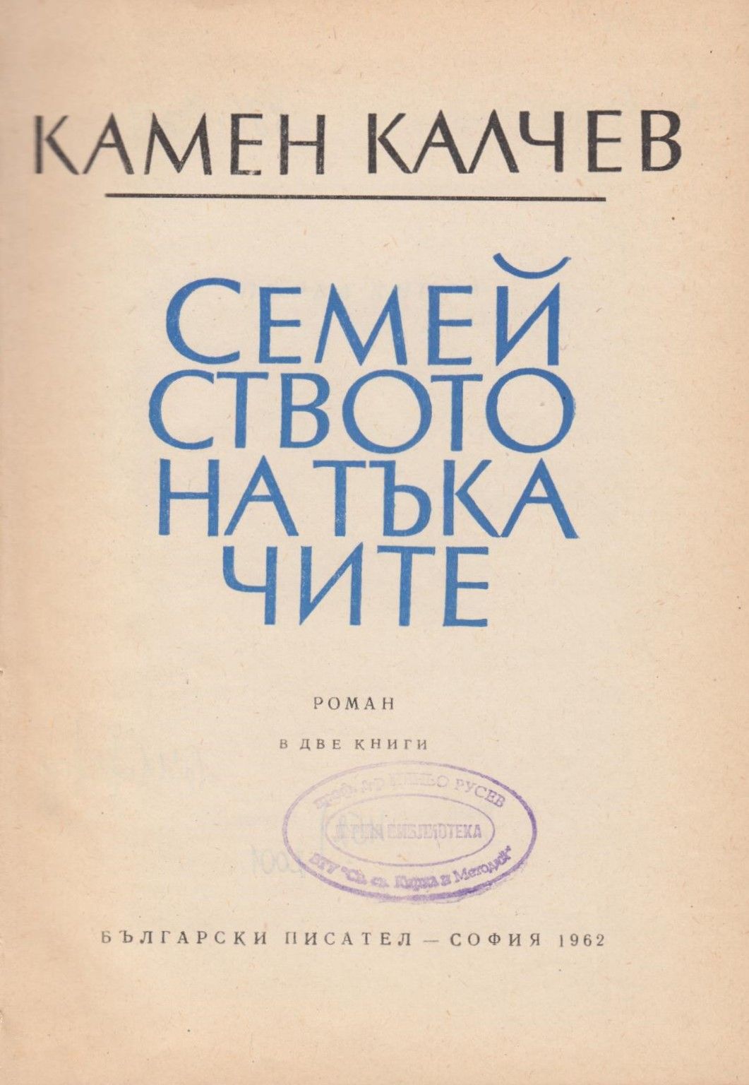 Калчев, Камен. Семейството на тъкачите : Роман / Камен Калчев. - София : Бълг. писател, 1962. - 654 с. ; 25 см.