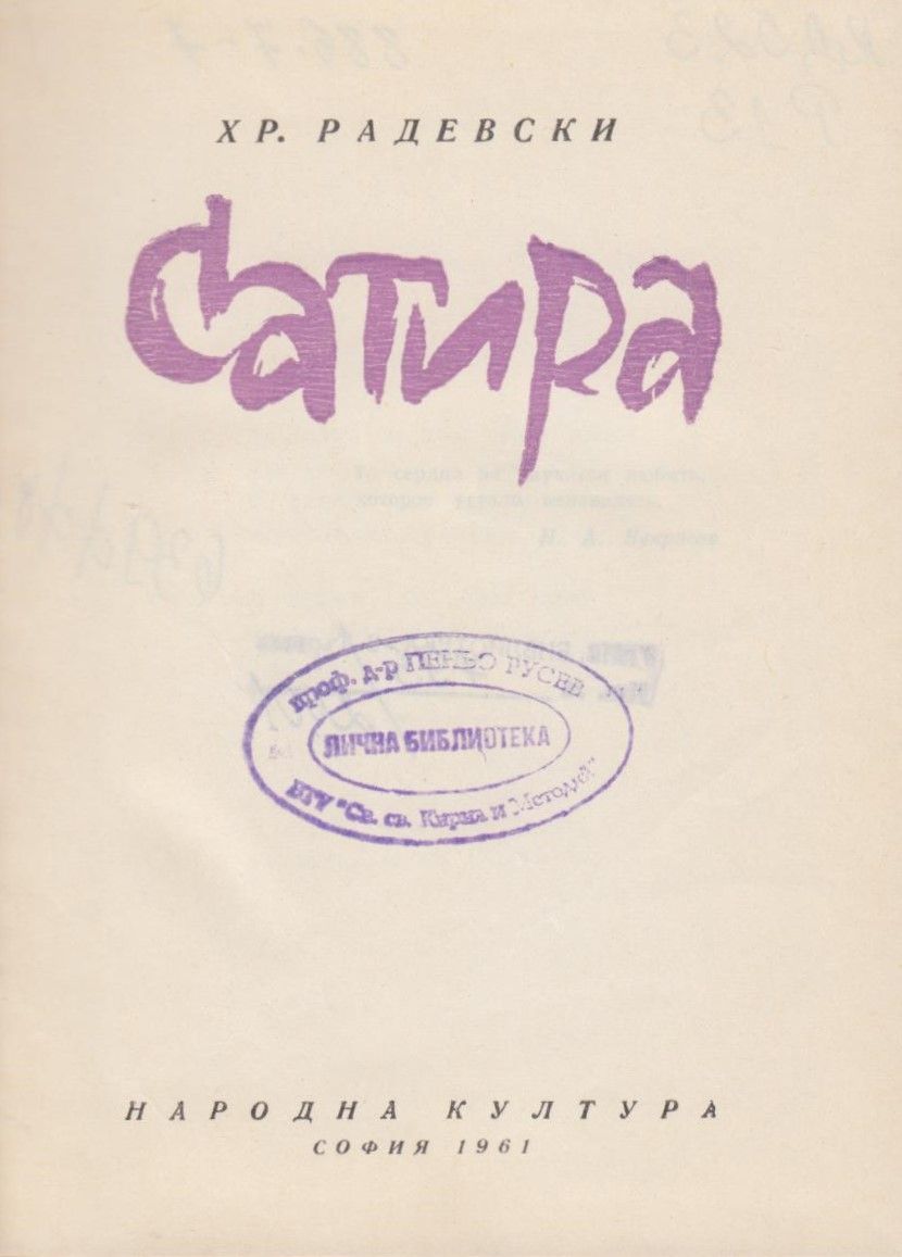 Радевски, Христо. Сатира / Христо Радевски. - София : Нар. култура, 1961. - 230 с. ; 19 см.