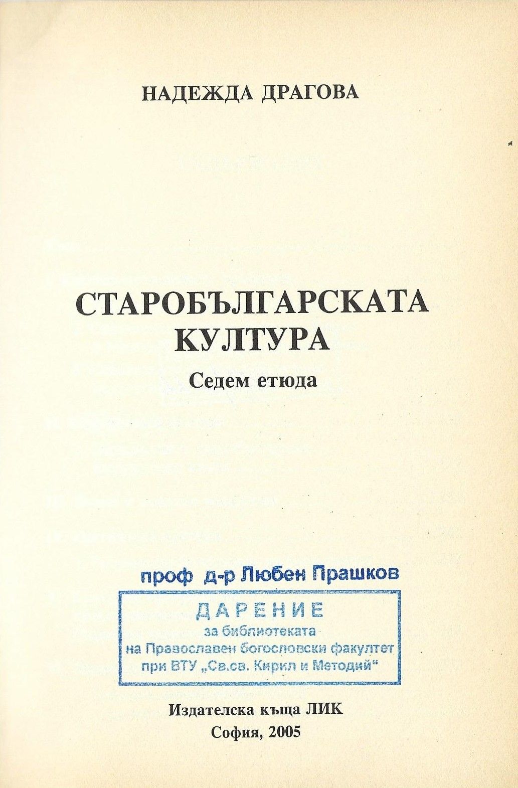Драгова, Надежда. Старобългарската култура : Седем етюда / Надежда Драгова . - София : ЛИК, 2005 . - 427 с. ; 20 см