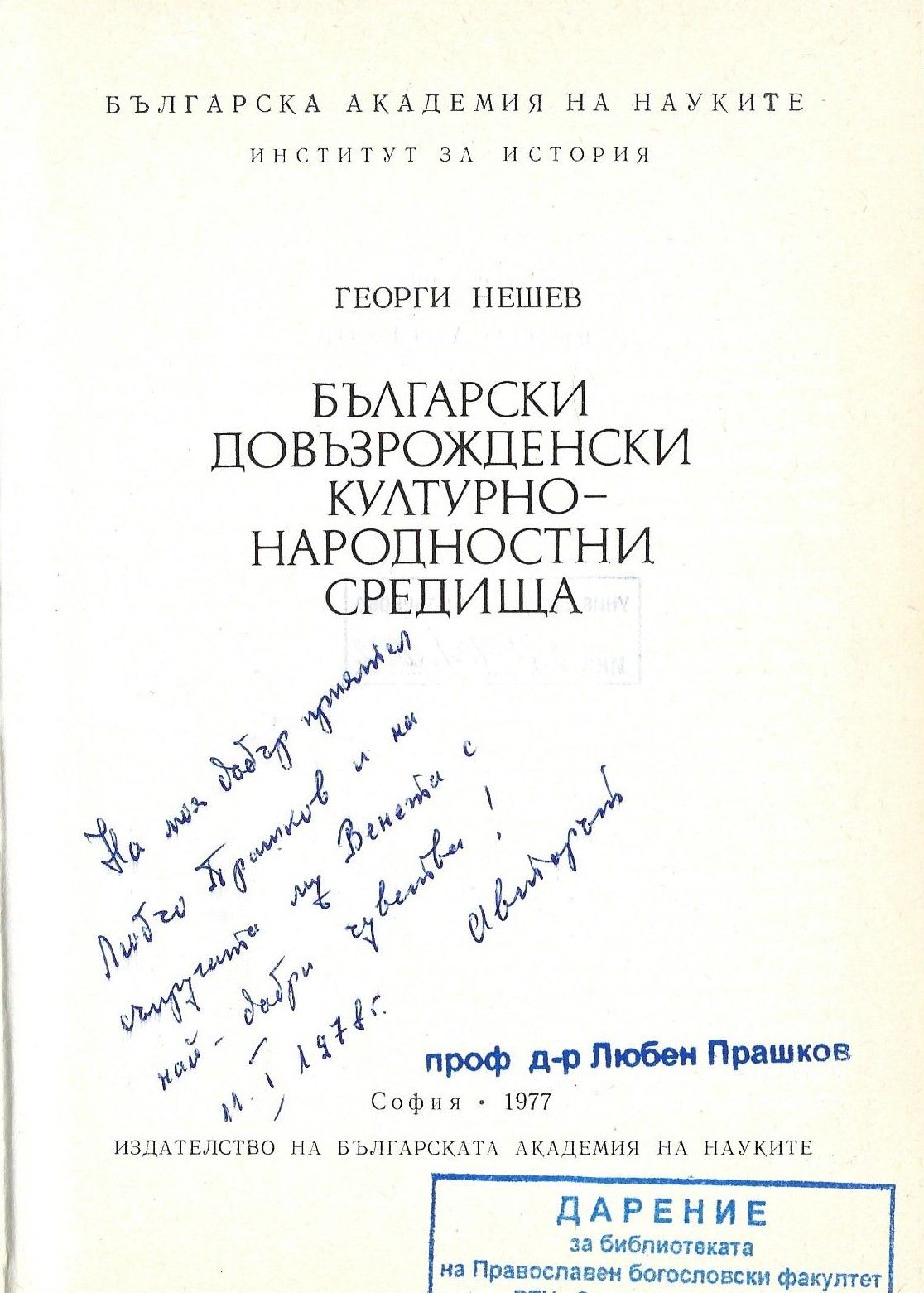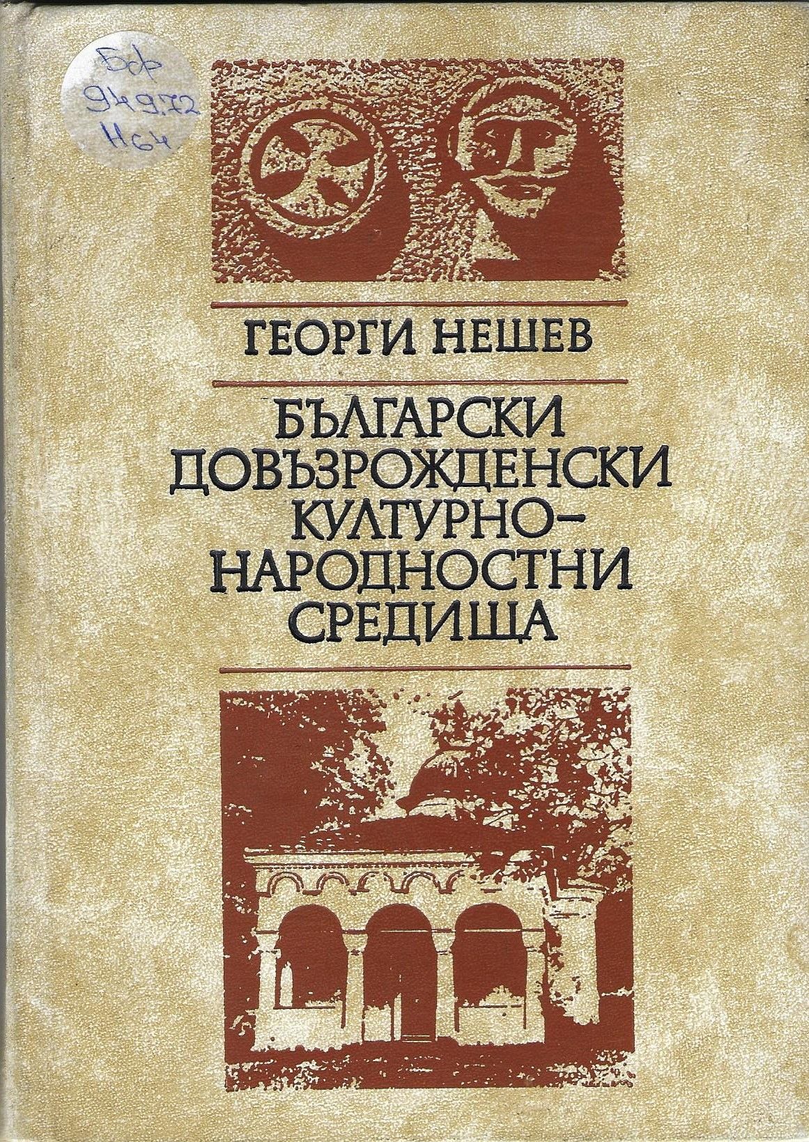 Нешев, Георги Добрев. Български довъзрожденски културно-народностни средища : [Монография] / Георги Нешев ; Отг. ред. Боньо Ангелов. - София : Изд. на БАН, 1977. - 260 с. : с ил. ; 21 см.