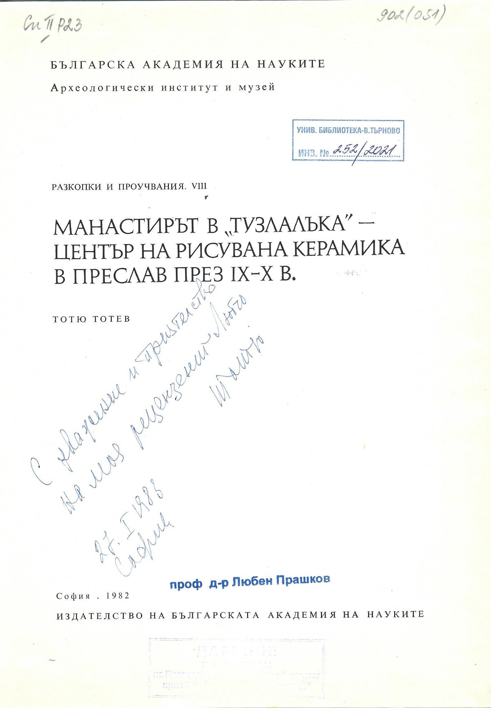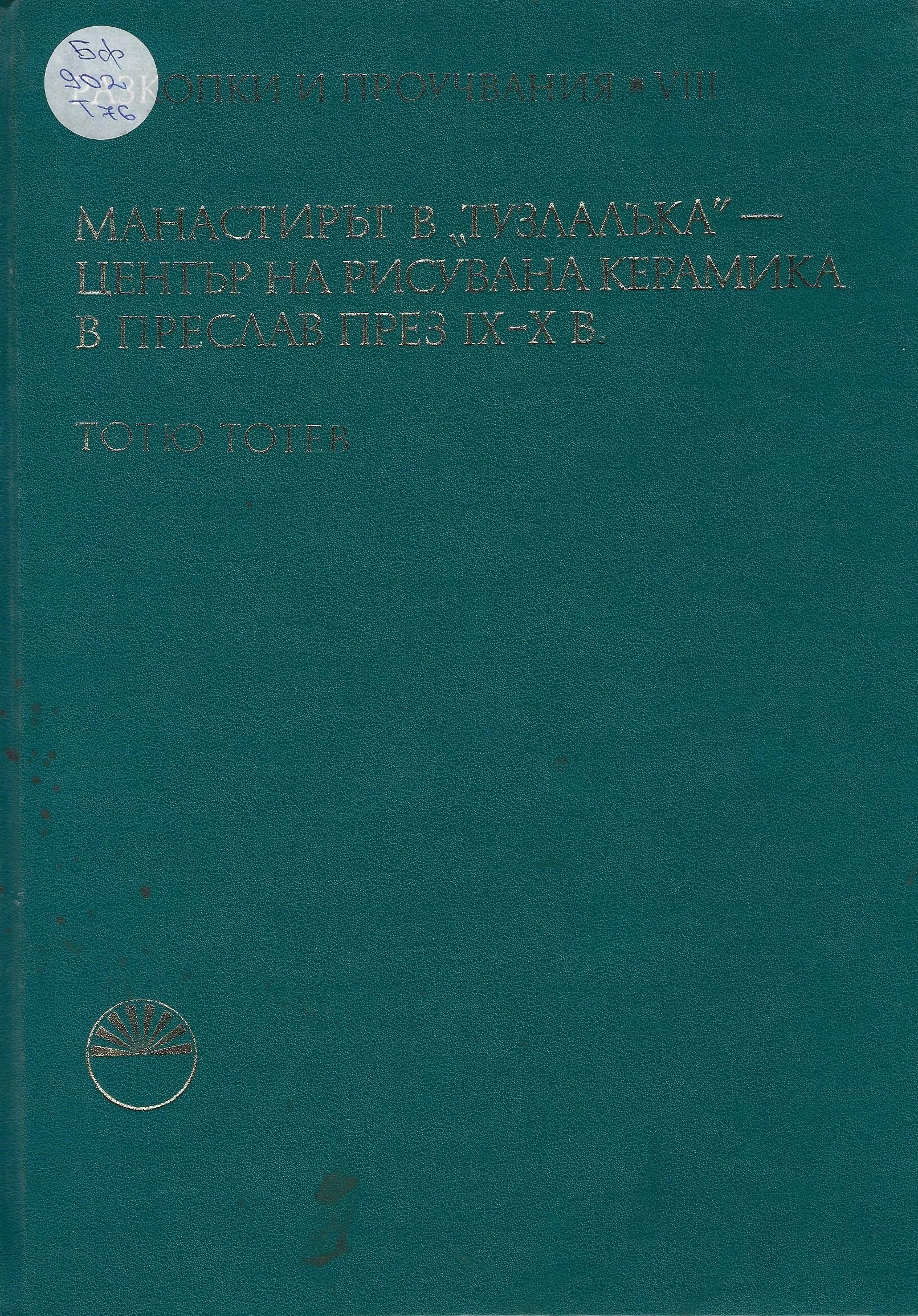 Тотев, Тотю. Манастирът в "Тузлалъка" - център на рисувана керамика в Преслав през IX - X в : [Изследване] / Тотю Тотев. - София : БАН, 1982. - 80 с., 3 л. ил. : с ил. ; 30X20 см.