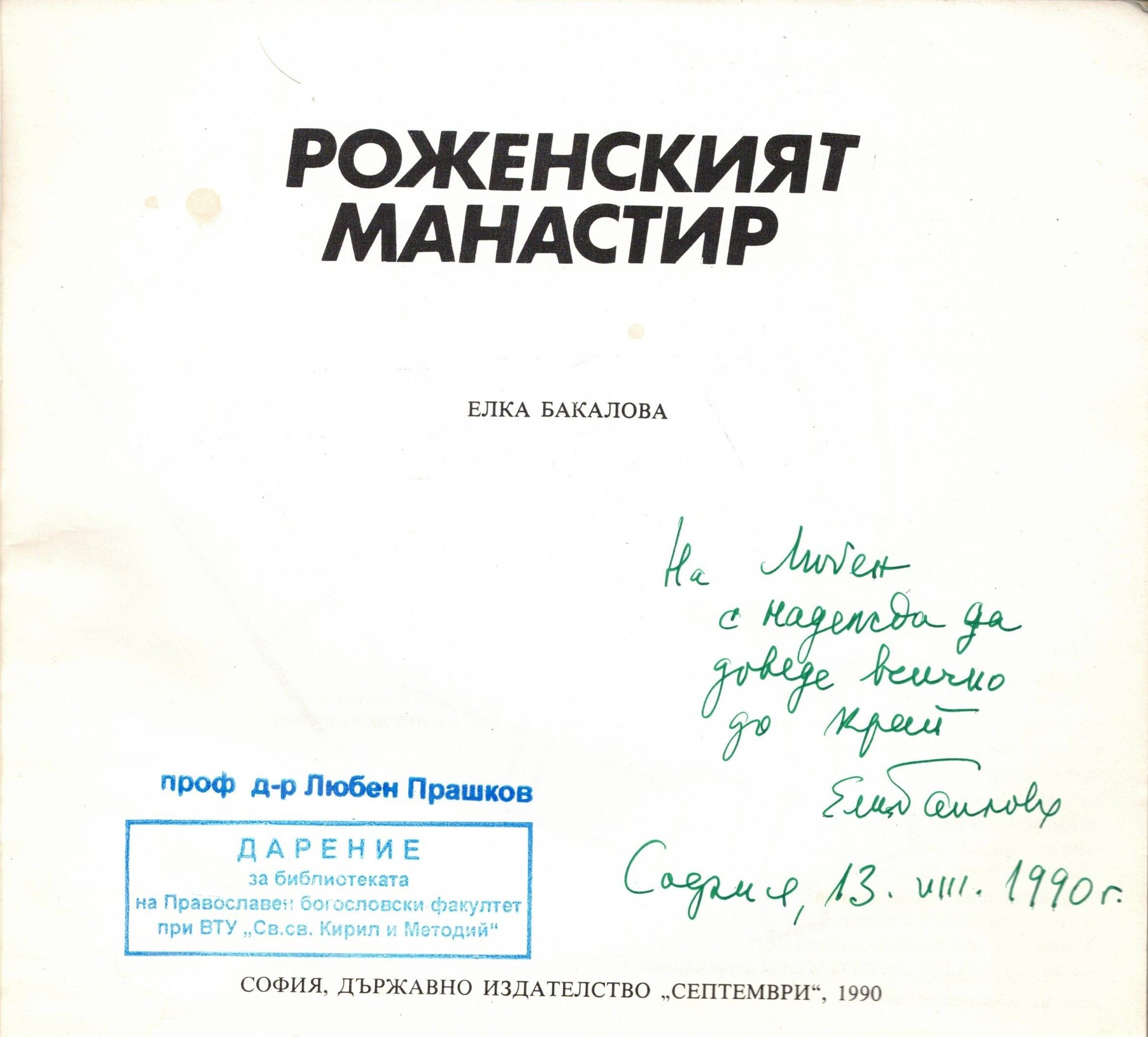 Бакалова, Елка.Роженският манастир : Албум / Авт.-състав. Елка Бакалова ; Ред. Теменуга Рашкова ; Фотогр. Петър Франц. - София : Септември, 1990. - 108 с. : с цв. ил. ; 19Х20 см.