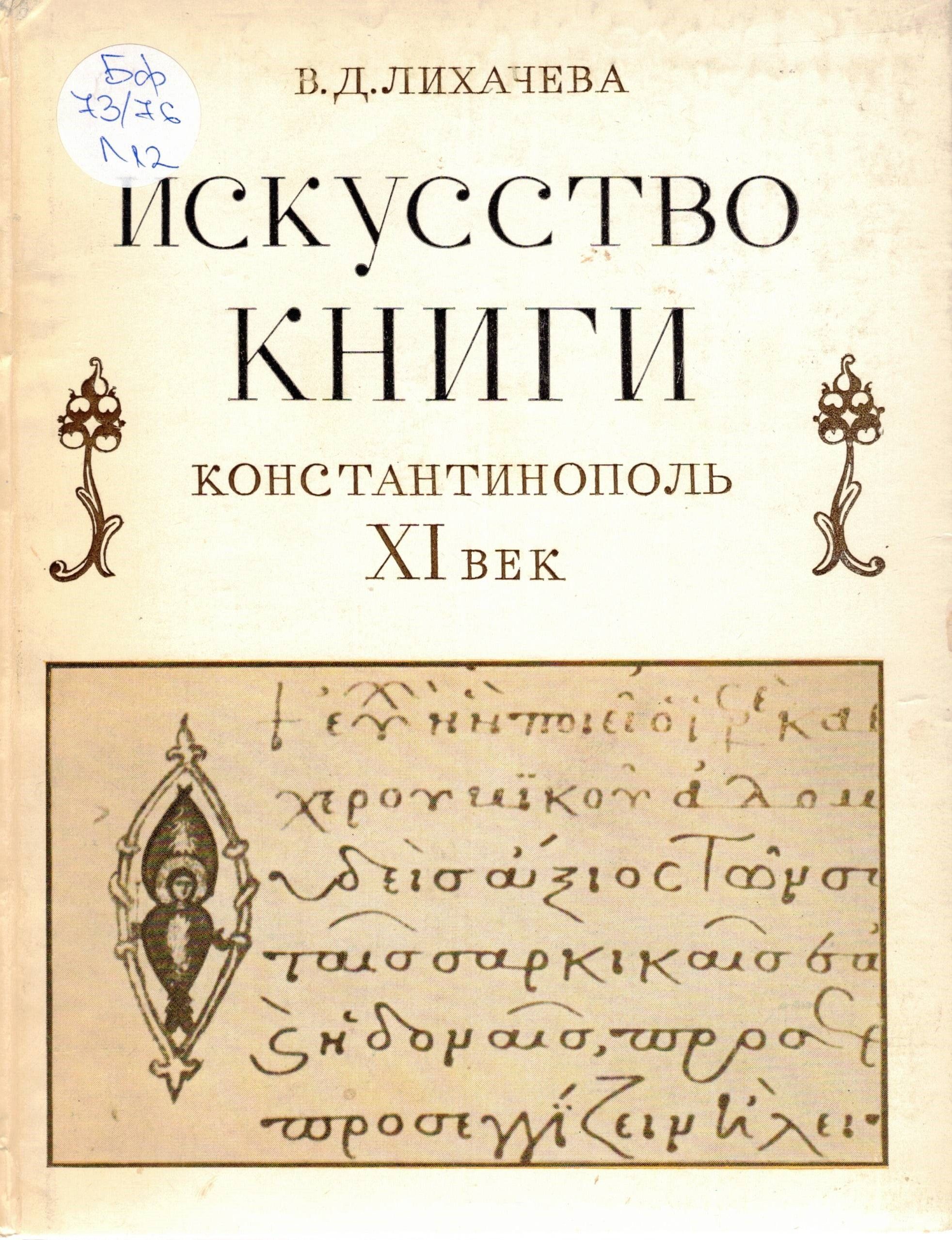 Лихачева, Вера Дмитриевна. Искусство книги : Константинополь XI век / В. Д. Лихачева ; Отв. ред. Е. Э. Гранстрем. - Москва : Наука, 1976. - 184 с., 4 л. цв. факс. : с ил., факс. ; 22 см.