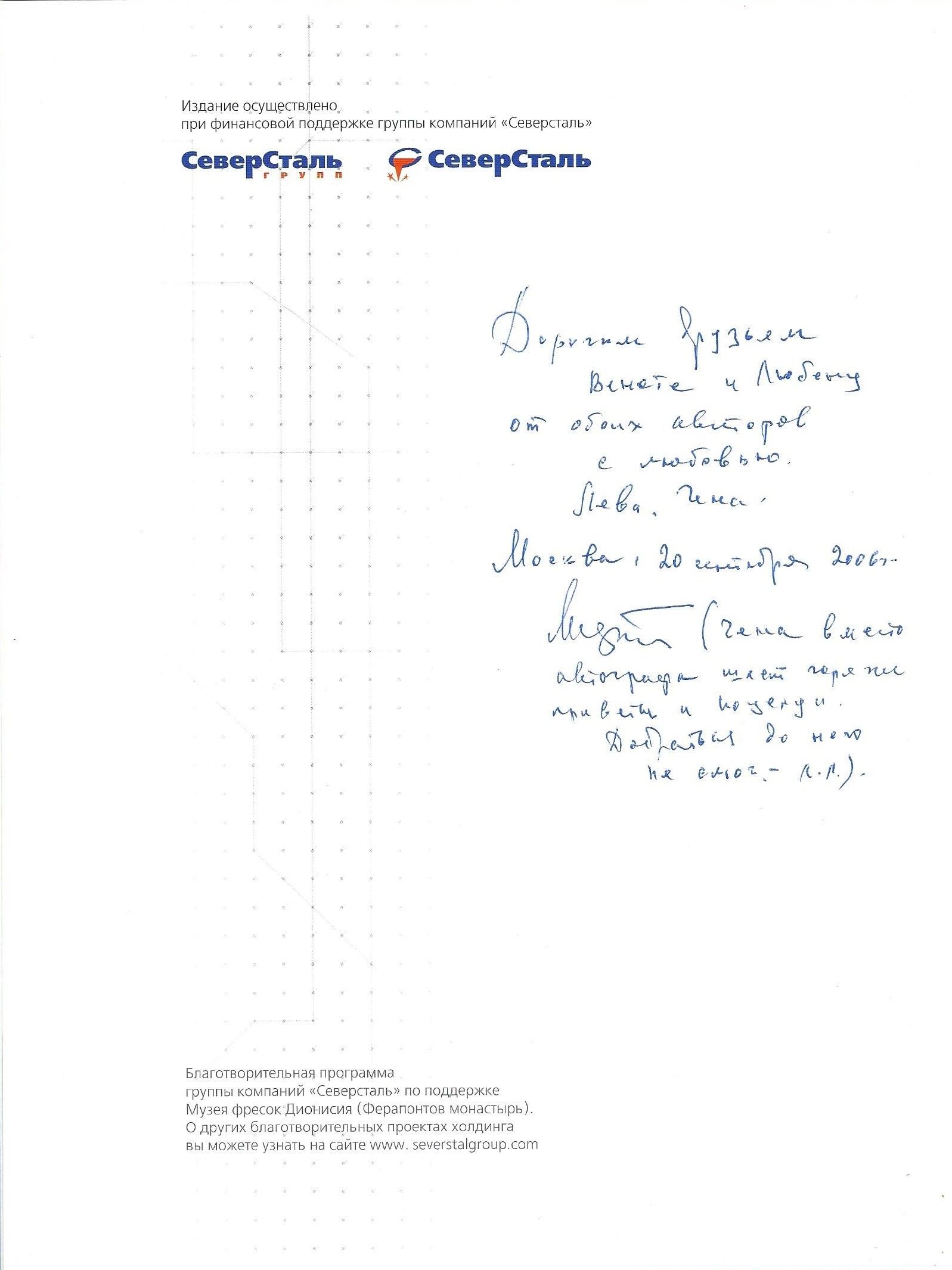 (Гема вместо автографа шлетгорячий приветь и [не се чете]. Добраться до него не смог. – Л. Л.)