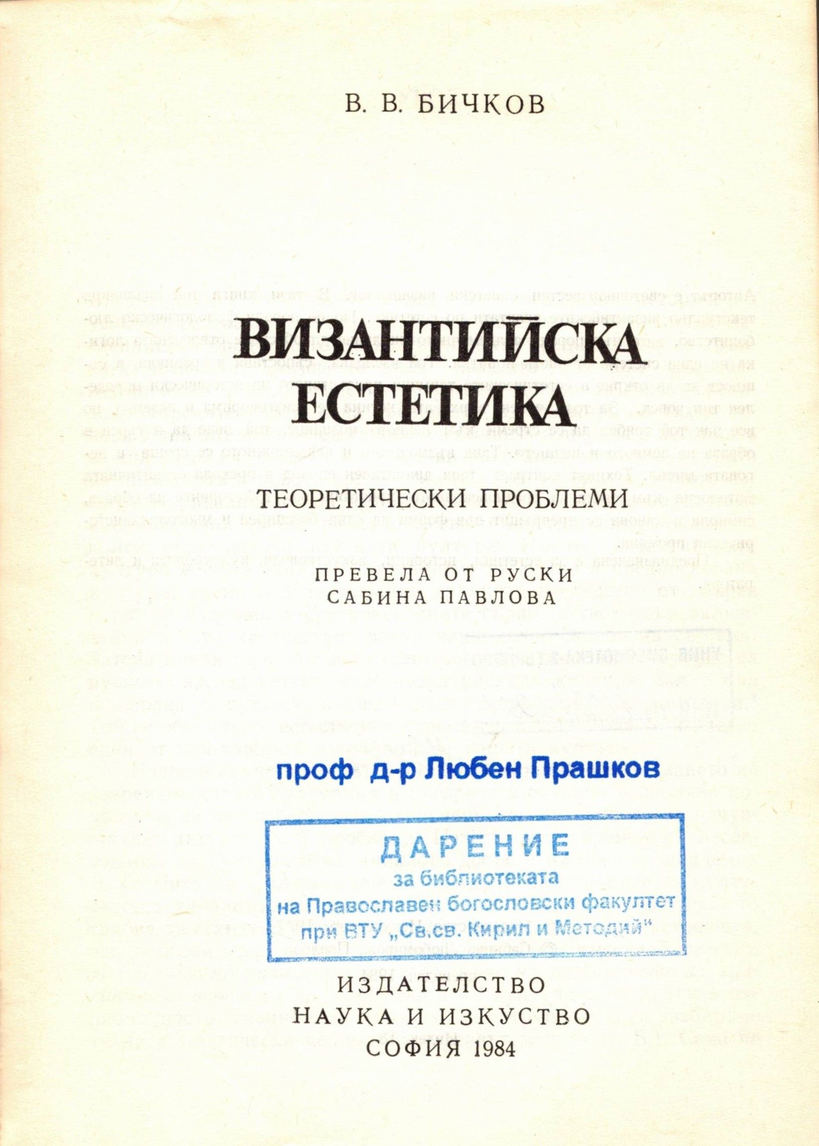 Бичков, Виктор Василиевич. Византийска естетика : Теоретически проблеми / В. В. Бичков ; Прев. от рус. Сабина Павлова. - София : Наука и изкуство, 1984. - 180 с. ; 20 см.
