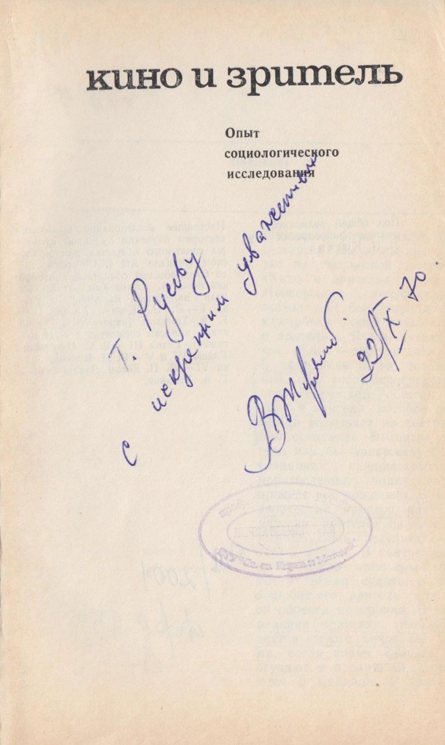 Кино и зритель : Опыт социологического исследования / Под общ. ред. Л. Н. Когана. - Москва : Искусство, 1968. - 328 с. : с табл. ; 21 см.