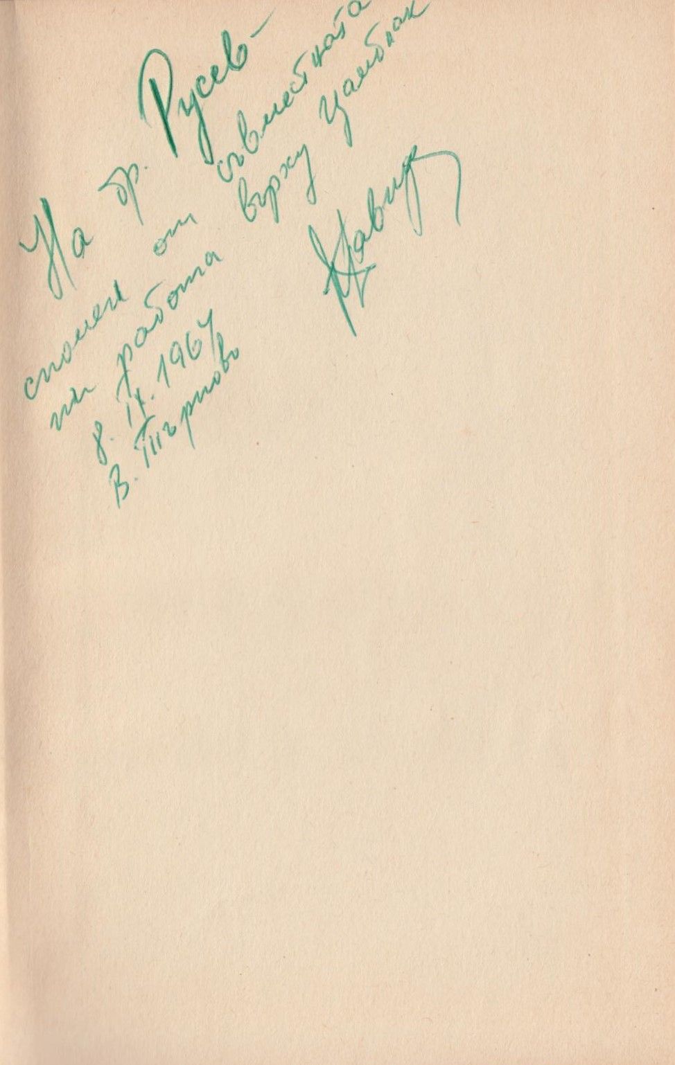 Описание : Автограф на бълг. ез.: На др. Русев – Спомен от съвместната ни работа върху Цамблак. 8.IX.64. В. Търново.