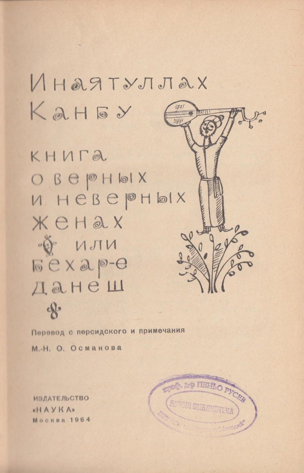 Канбу, Инаятуллах. Книга о верных и неверных женах, или Бехар-е данеш / Инаятуллаха Канбу ; Пер. с перс. и приемач Магомед-Нури Османович Османов. - Москва : Наука, 1964. - 400 с. : с ил. ; 20 см.