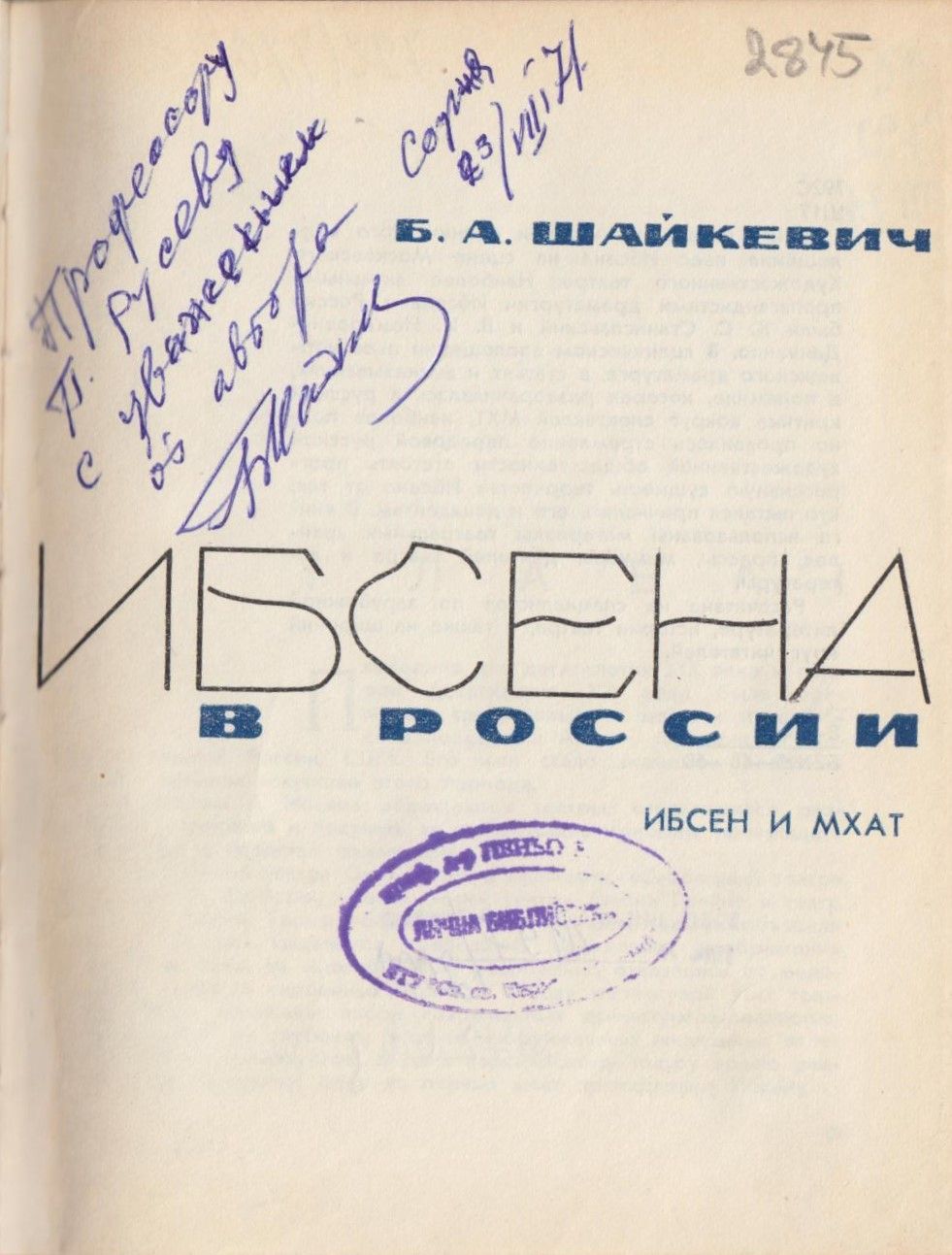 Шайкевич, Борис. Драматургия Ибсена в России : Ибсен и МХАТ / Борис А. Шайкевич. - Киев : Киевский унив., 1968. - 179 с. : с ил. ; 17 см.