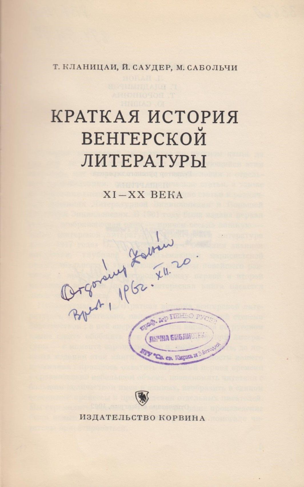 Кланицаи, Т. и др. Краткая история Венгерской литературы : XI – XX век / Т. Кланицаи, Й. Саудер, М. Сабольчи. – [Будапешт], 1962. – 404 с., 21 см
