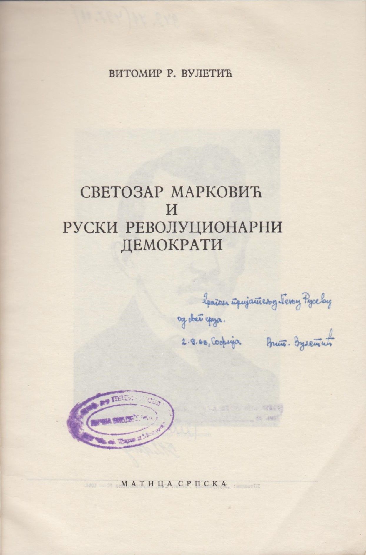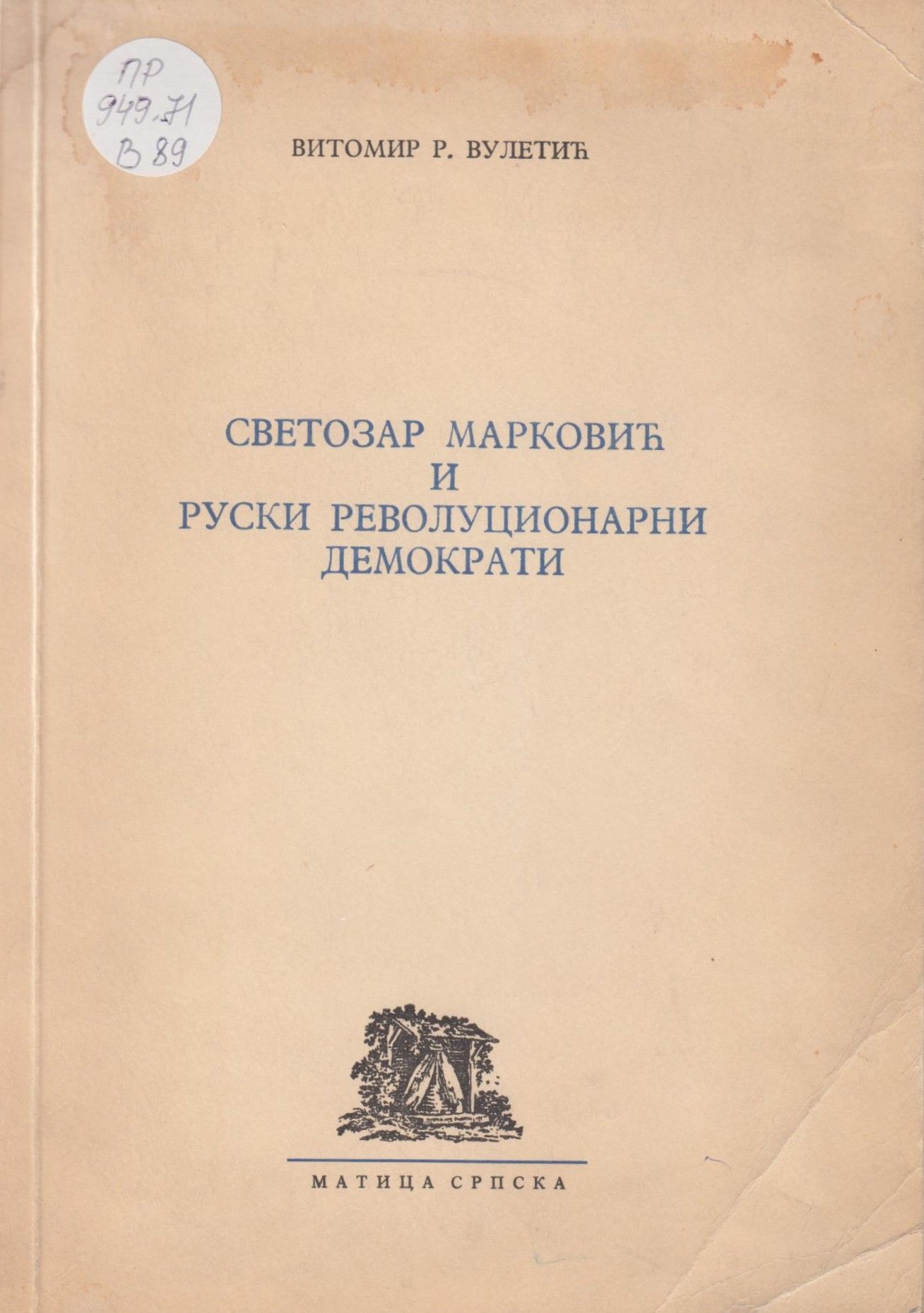 Вулетич, Витомир Р. Светозар Маркович и руски револуционарни демократи / Витомир Р. Вулетич . - Нови Сад. : Матица српска,1964 . - 250 с. ; 24 см