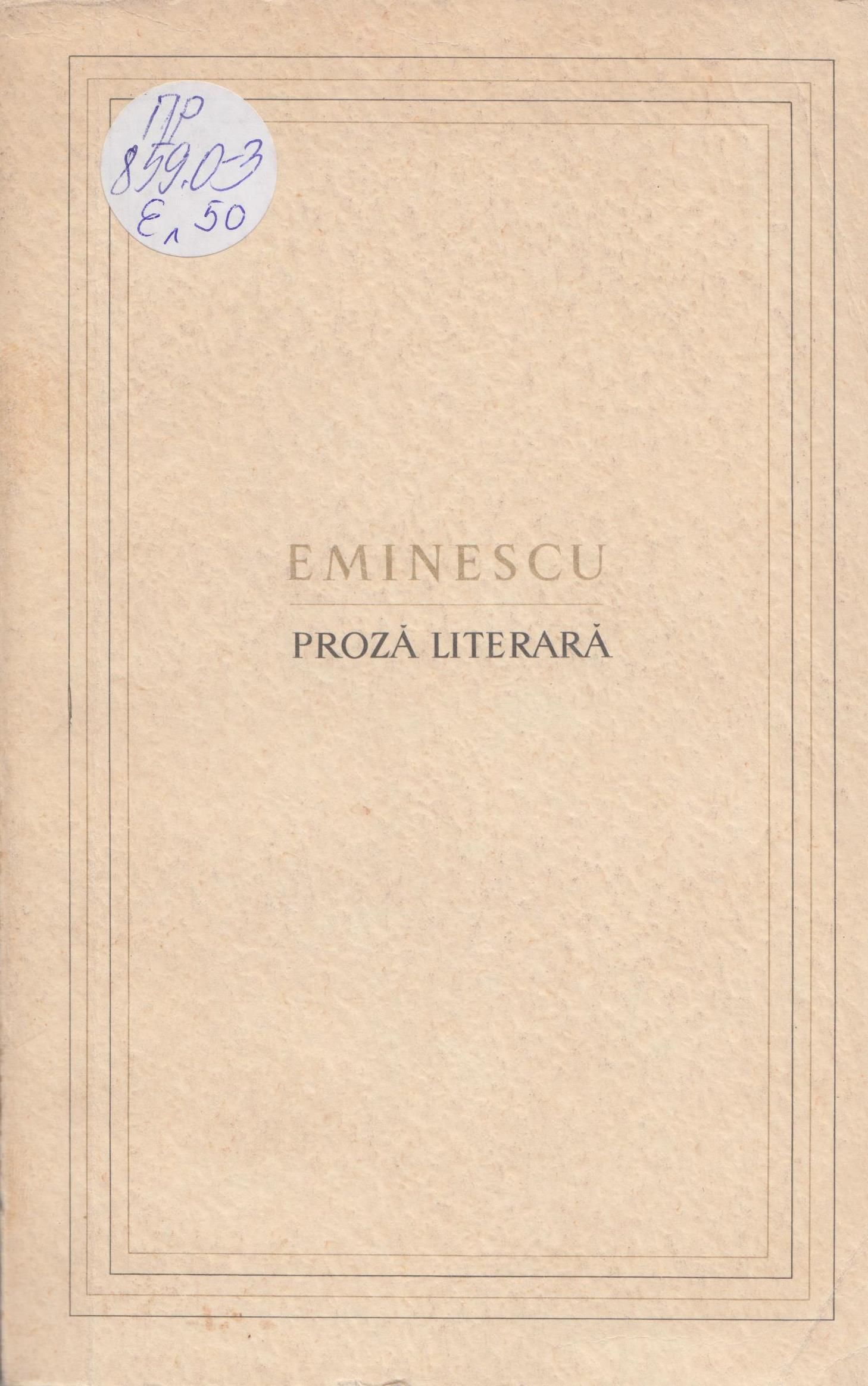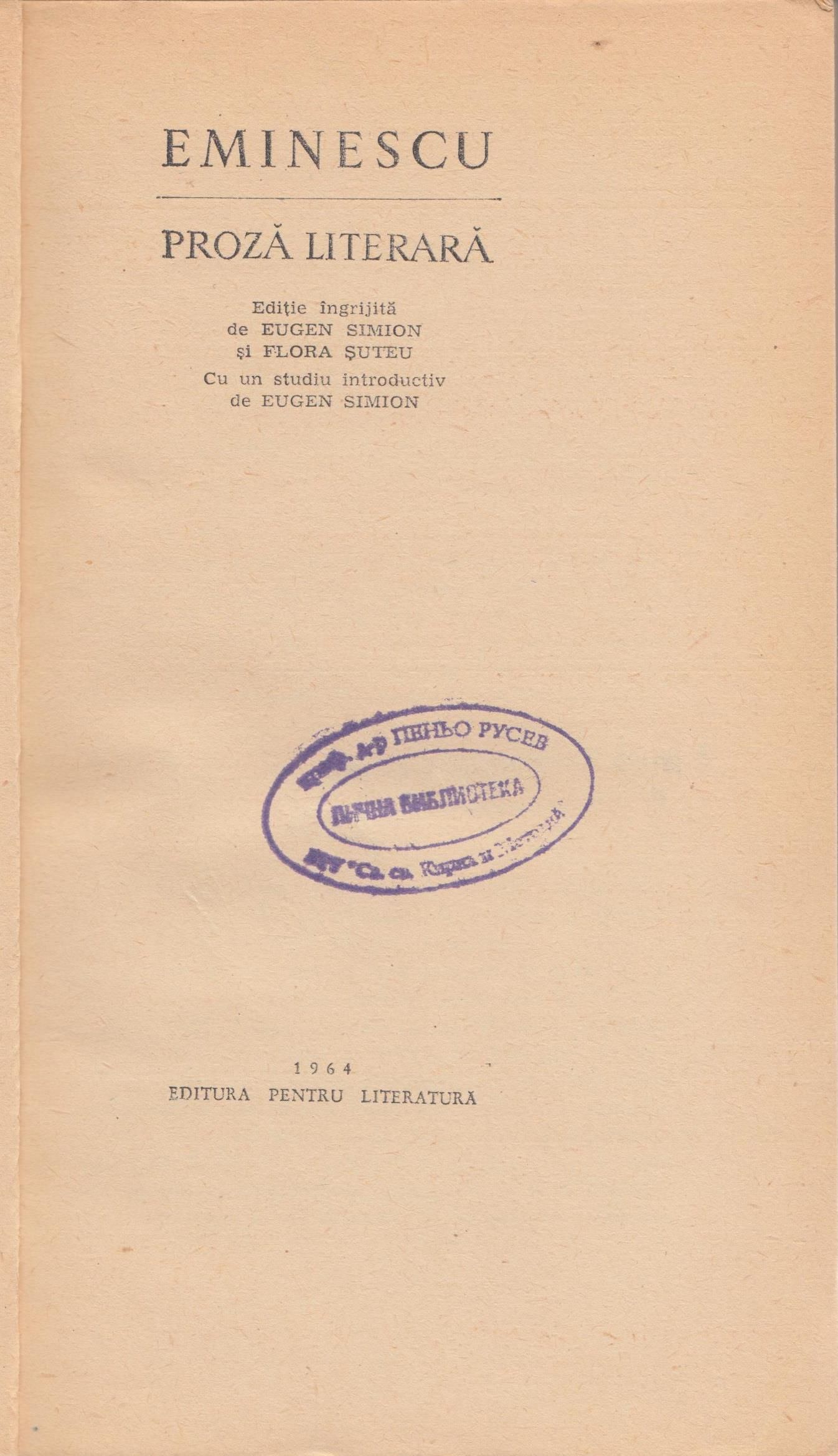 Eminescu, Lui. Proza literara / Lui Eminescu ; Ed. -comp. Eugen Simion, Flora Suteu . - Bucuresti : Petru literatura, 1964 . - 397 p. ; 20 cm.
