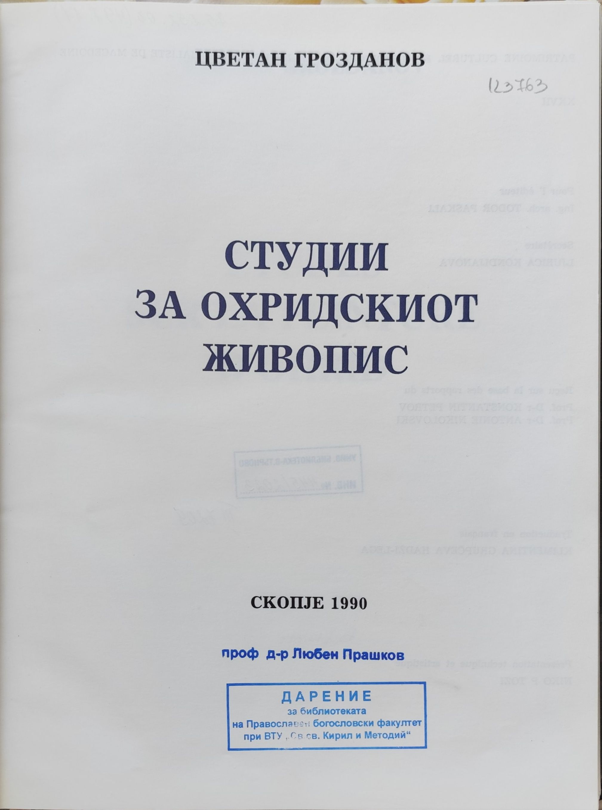 Грозданов, Цветан. Студии за охридскиот живопис / Цветан Грозданов. - Скопjе : Матица макед., 2017. - 280 с. : с цв. ил., фотогр. ; 28 см.