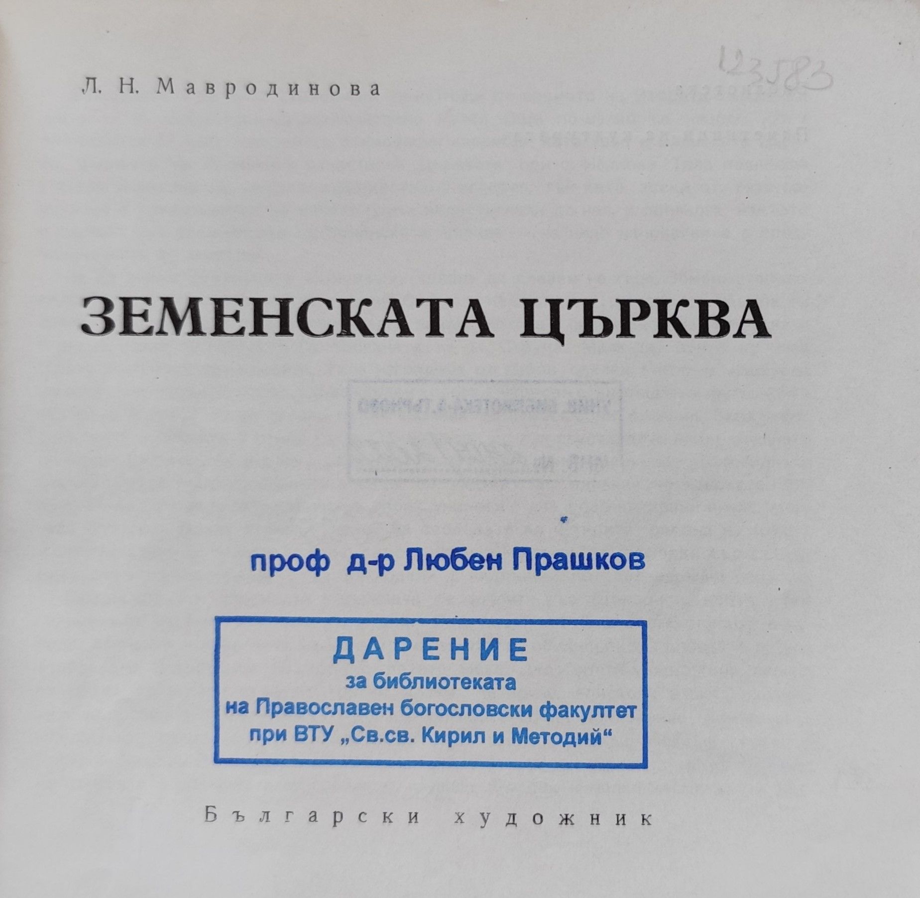 Мавродинова, Лиляна. Земенската църква : [Албум] / Лиляна Мавродинова. - София : Български художник, 1966. - 72 с. : с репрод. ; 15X17 см.