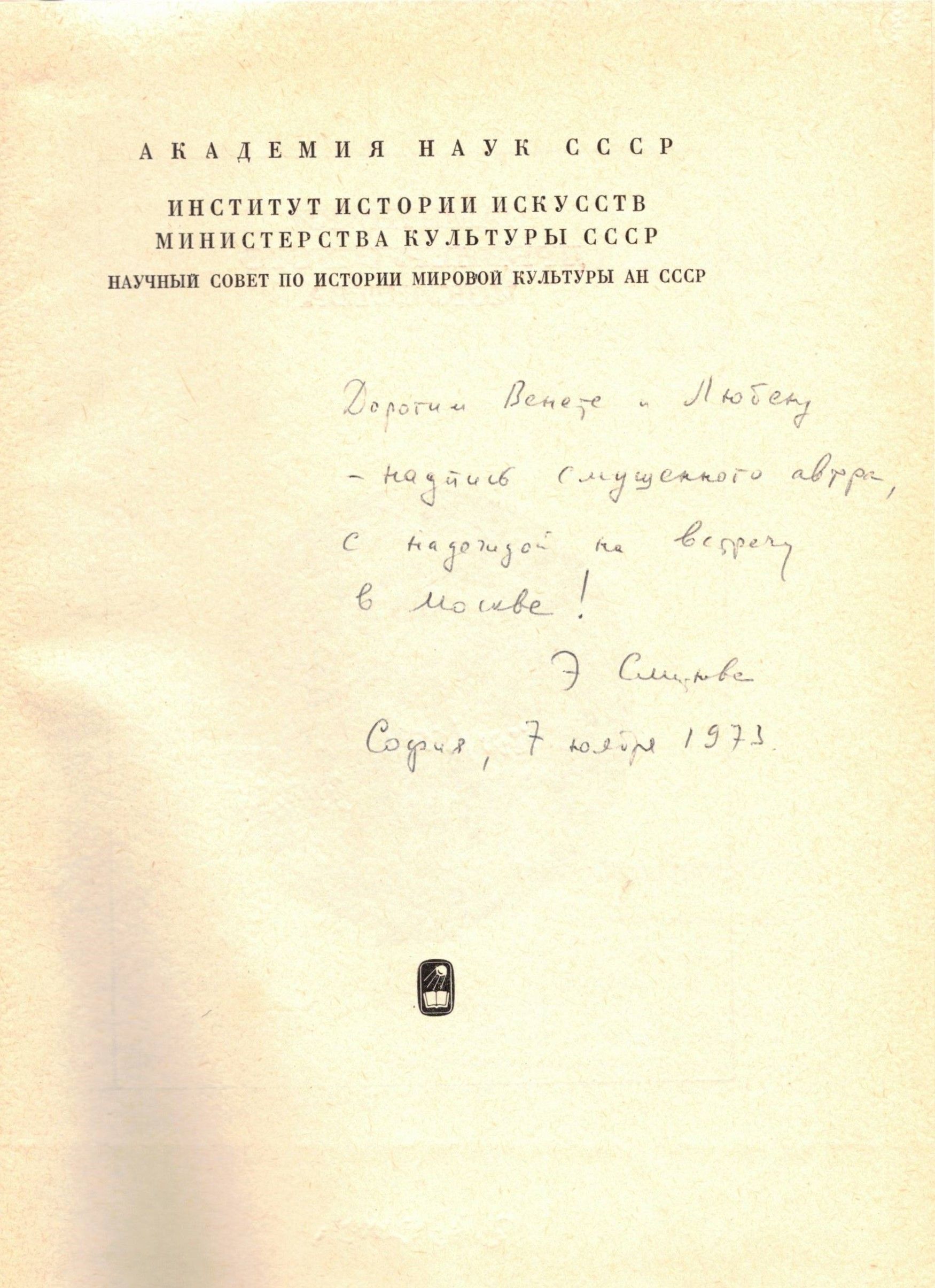 Описание : Дорогим Венете и Любену – надпись смущенного автора, с надеждой на встречу в Москве!