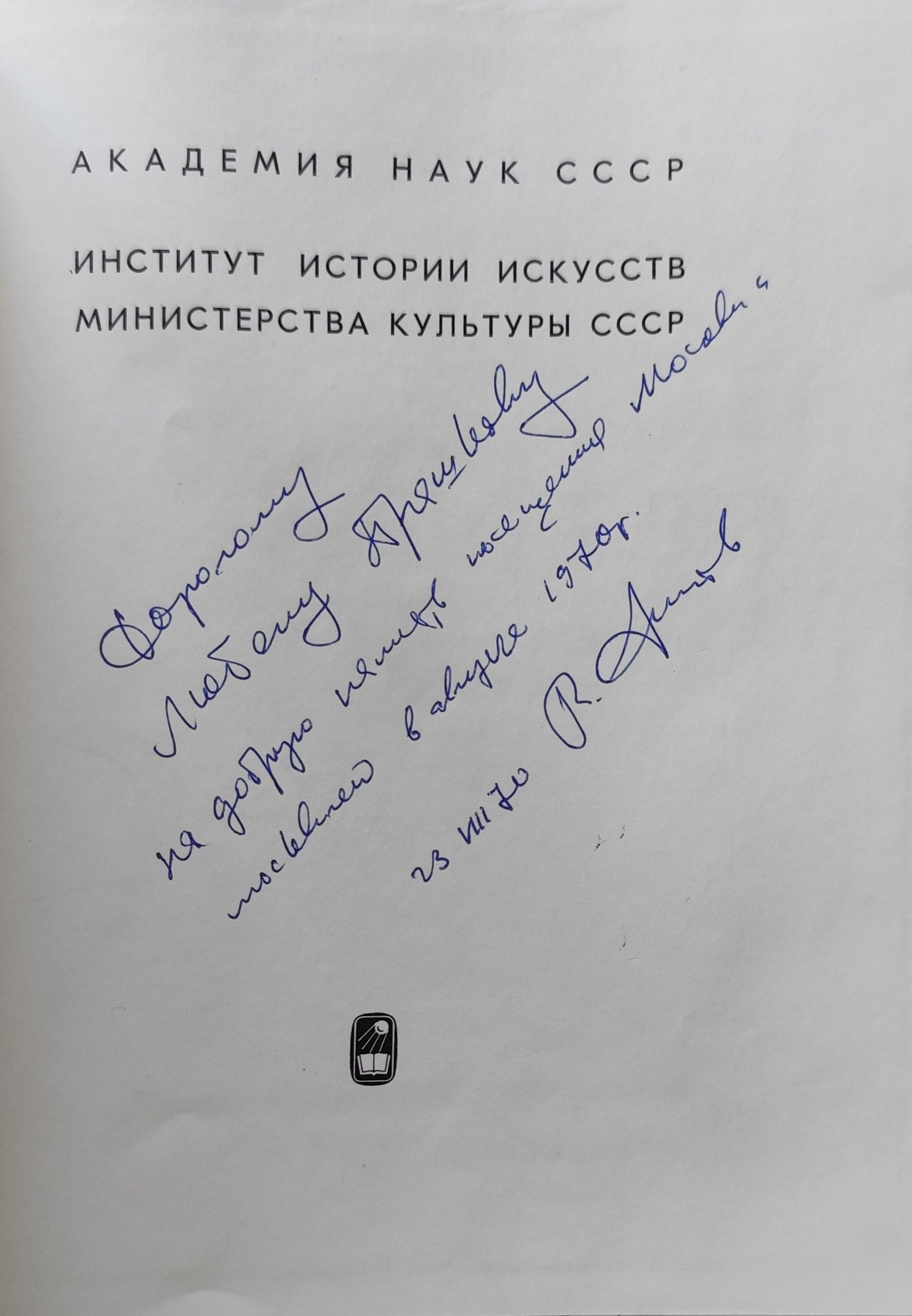 Описание : Дорогому Любену Прашкову на добрую память посещения Москви в августе 1970 г.