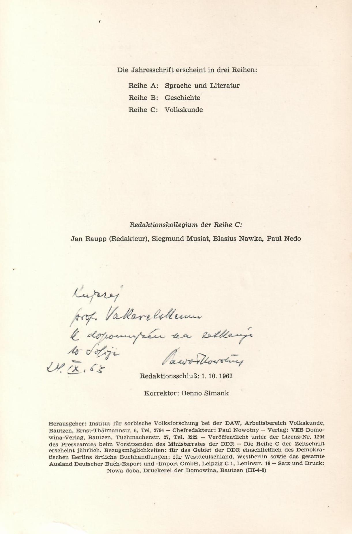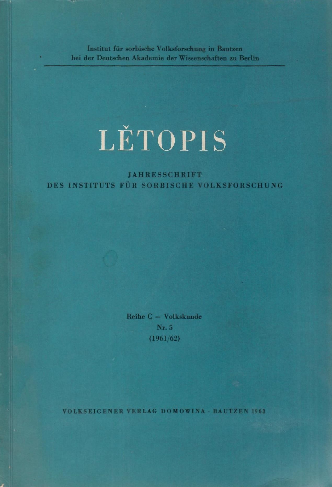 Letopis : Jahresschrift des Instituts fuer Sorbische Volksforschung. Reihe C Volkskunde. - Bautzen : Domowina, N 5 (1963)-. - 24 cm