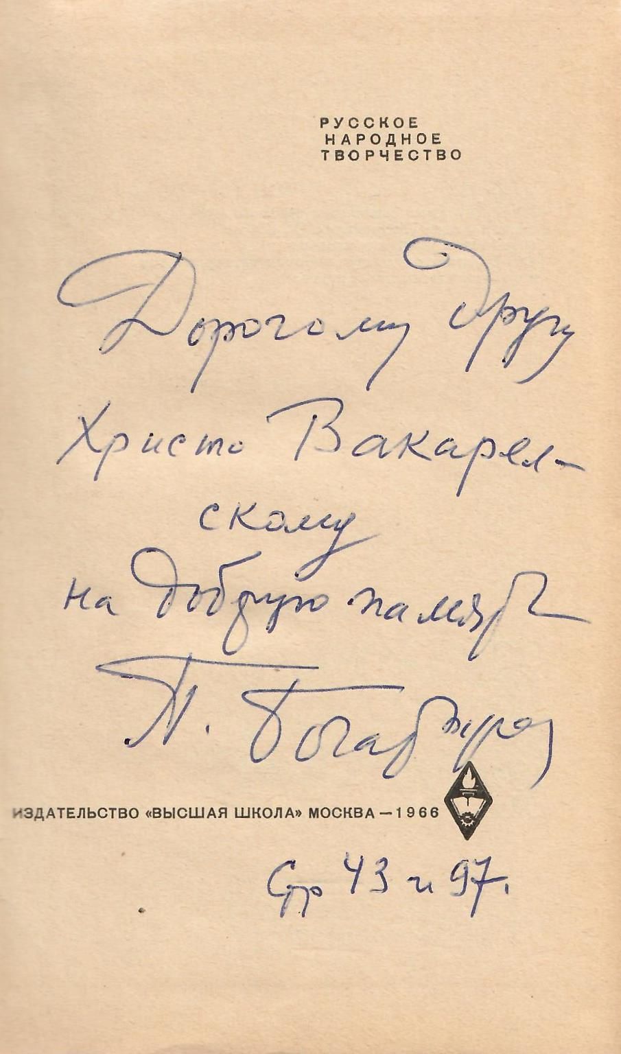 Описание : Дорогому другу Христо Вакарелскомуна добрую памят