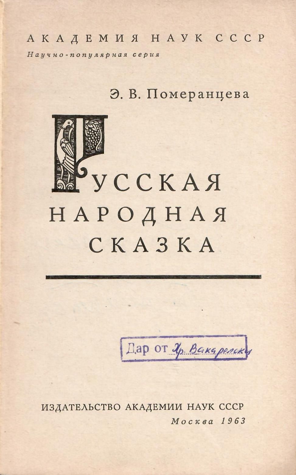 Померанцева, Эрна. Русская народная сказка / Эрна В. Померанцева. - Москва : АН СССР, 1963. - 128 с. ; 23 см.