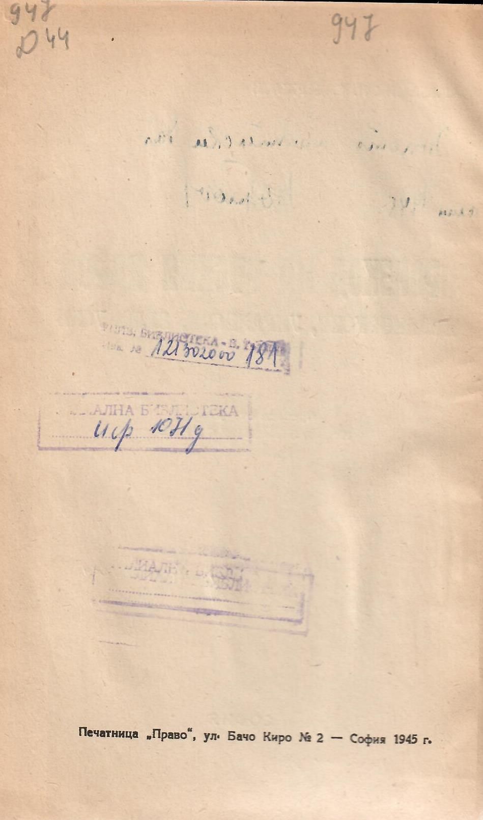 Год.издаване : София, юлий 1945 (дата на посвещението); 1945 (година на отпечатване)