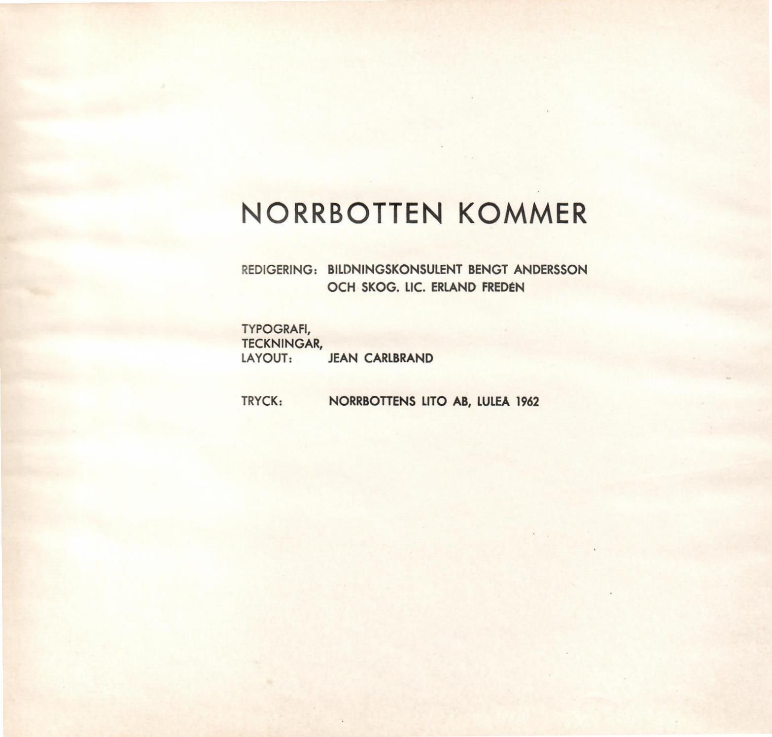 Norrbotten kommer / redigering: Bengt Andersson och Erland Freden. – Lulea : Norrbottens Lito AB, 1962. – (En bok fran Norrbottens Framjande).