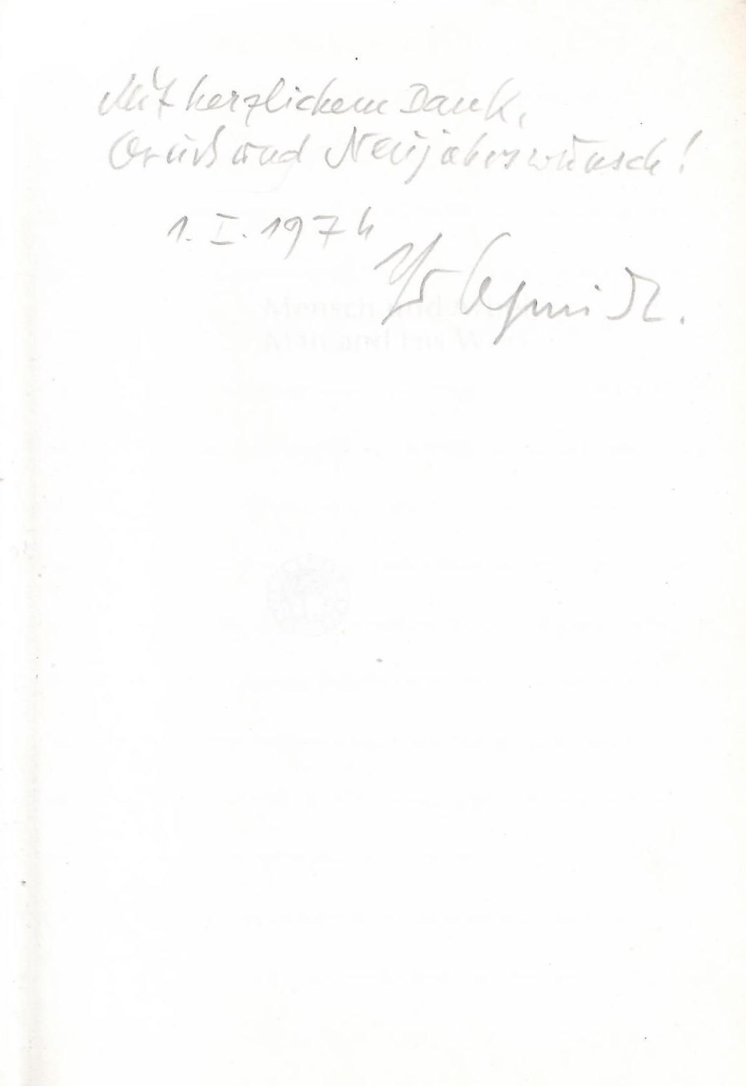 Описание : Издание с дарствен надпис на немски език: "Mit herzlichem Dank, Gruss und Neujahrswunsch! 1. I. 1974 L. Schmidt" (С искрени благодарности, поздрави и новогодишни пожелания! 1. I. 1974 Л. Шмид). Посвещението е от австрийския етнолог проф. Леополд Шмид за българския етнограф проф. Христо Вакарелски. Върху вътрешната заглавна страница (файл 3.jpg) е поставен и печат: "Дар от Хр. Вакарелски". Дигиталният обект е предназначен само за лично ползване.