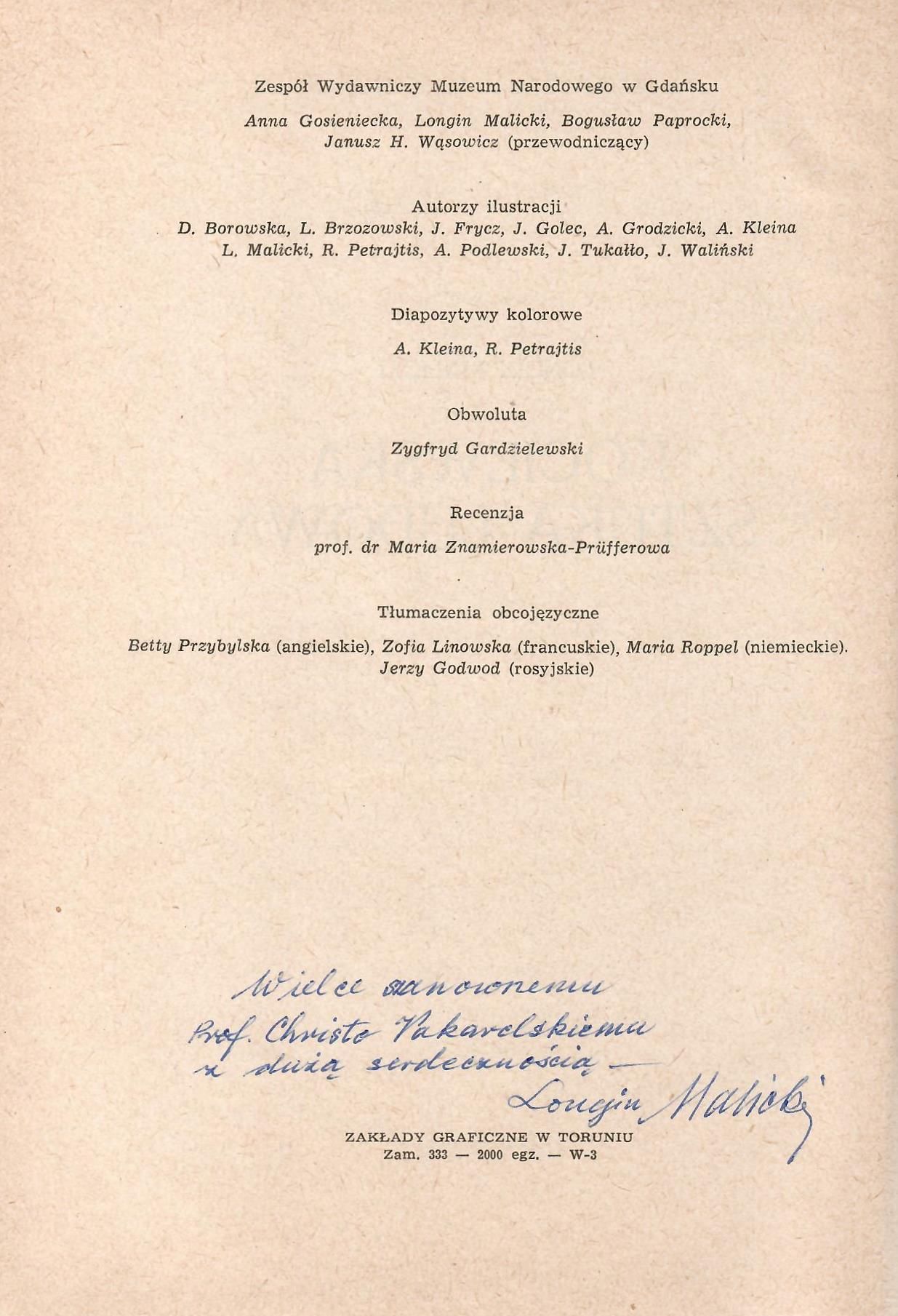 Описание : Екземпляр с дарствен надпис на полски език: "Wielce szanownemu Prof. Christo Vakarelskiemu z duza serdecznoscia – Longin Malicki" (На много уважавания проф. Христо Вакарелски с голяма сърдечност – Лонгин Малицки). Посвещението е от полския етнограф и музеолог Лонгин Малицки за българския етнограф проф. Христо Вакарелски. Книгата представлява подробно изследване на народното изкуство в полската етнографска област Кочевие. Дигиталният обект е предназначен само за лично ползване.