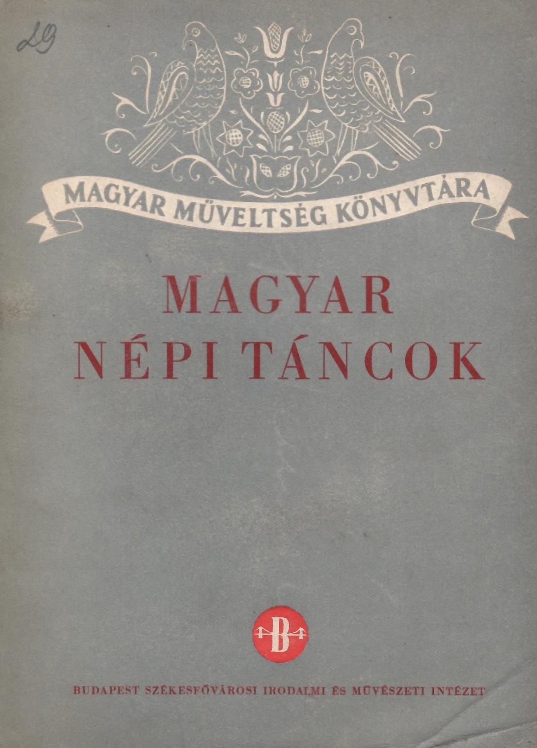 Описание : Екземпляр с дарствен надпис на унгарски език: "Vakarelski szeretettel: Lugossy Emma, Gonyey Sandor, Budapest" (На Вакарелски с любов: Ема Лугоши, Шандор Гьоней, Будапеща). Посвещението е от съставителите на сборника – унгарските етнографи и изследователи на танца Ема Лугоши и Шандор Гьоней за българския етнограф проф. Христо Вакарелски. Книгата съдържа описания на 15 групови народни танци, придружени от музикални приложения и илюстрации. *Дигиталният обект е предназначен само за лично ползване.