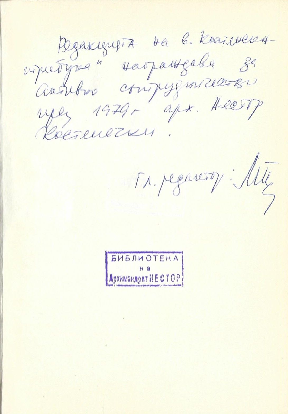 Автор : Заглавна страница с дарствен надпис