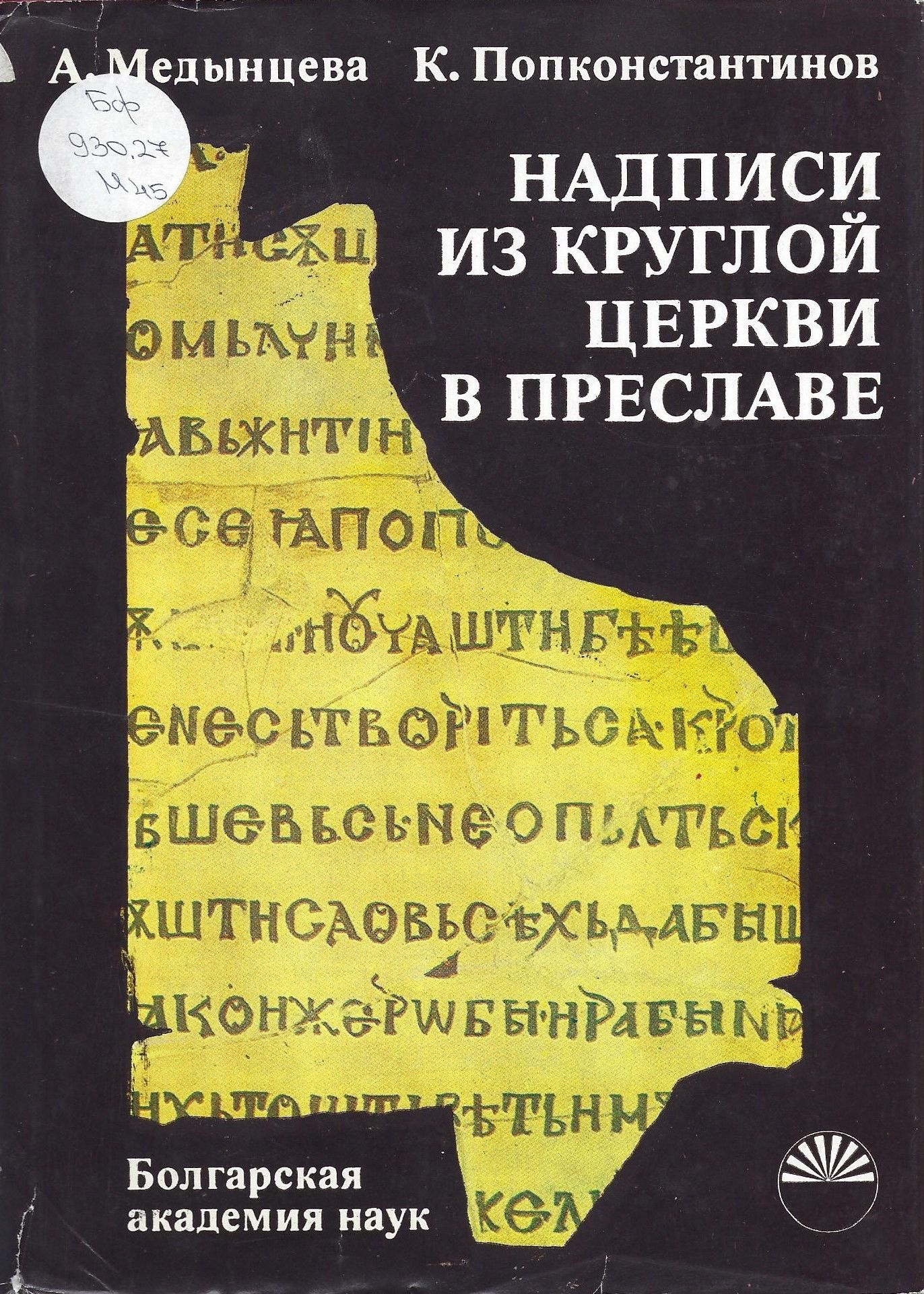 Медынцева, Албина, Попконстантинов, Казимир. Надписи из круглой церкви в Преславе : [Монография] / А. А. Медынцева, Казимир Попконстантинов. - София : БАН, 1984. - 132 с., 16 л. ил. : с табл. ; 25 см.