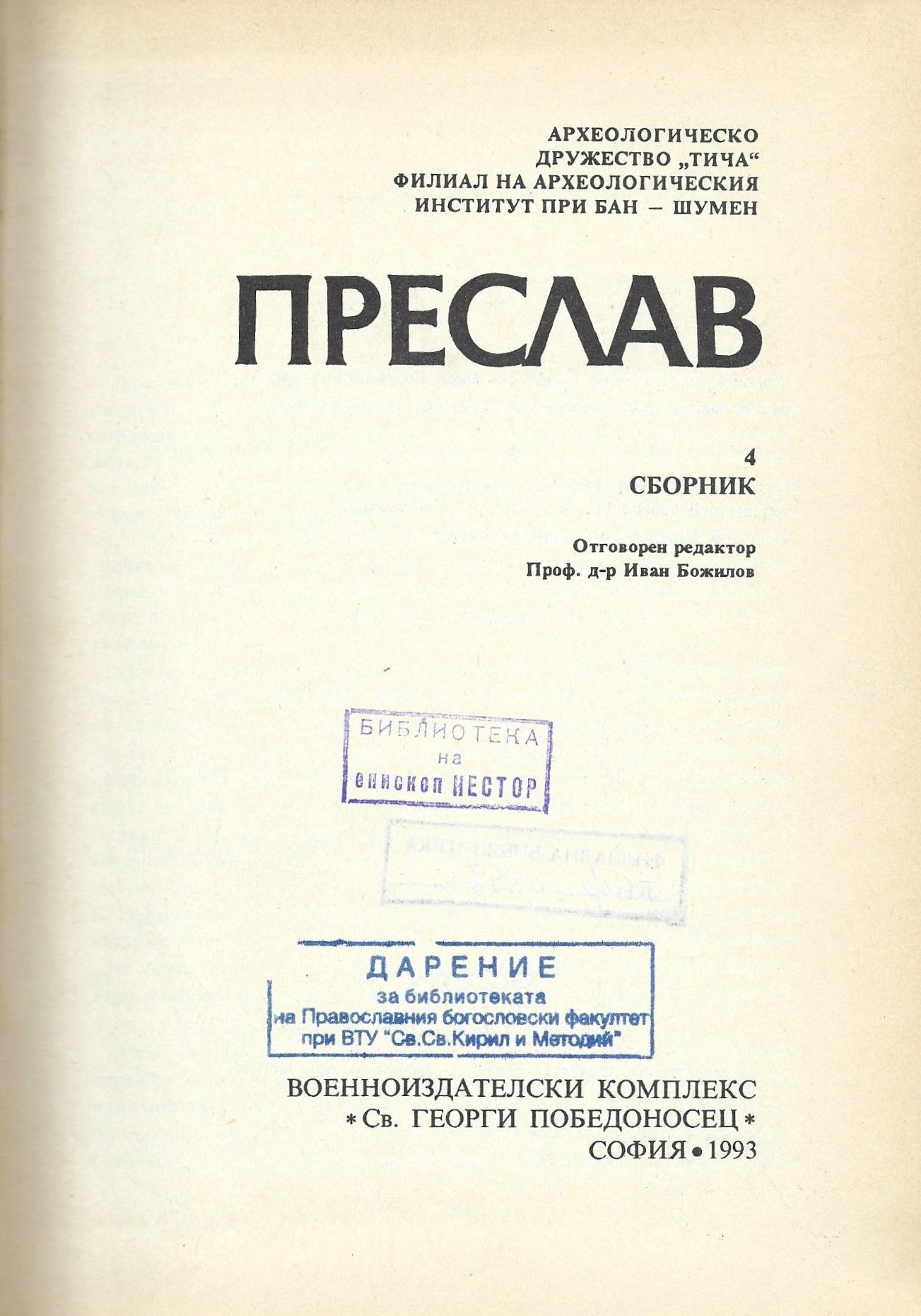 Преслав : Сборник [студии по археология] : Т. 4. - София : Военноиздателски комплекс "Св. Г. Победоносец", 1993