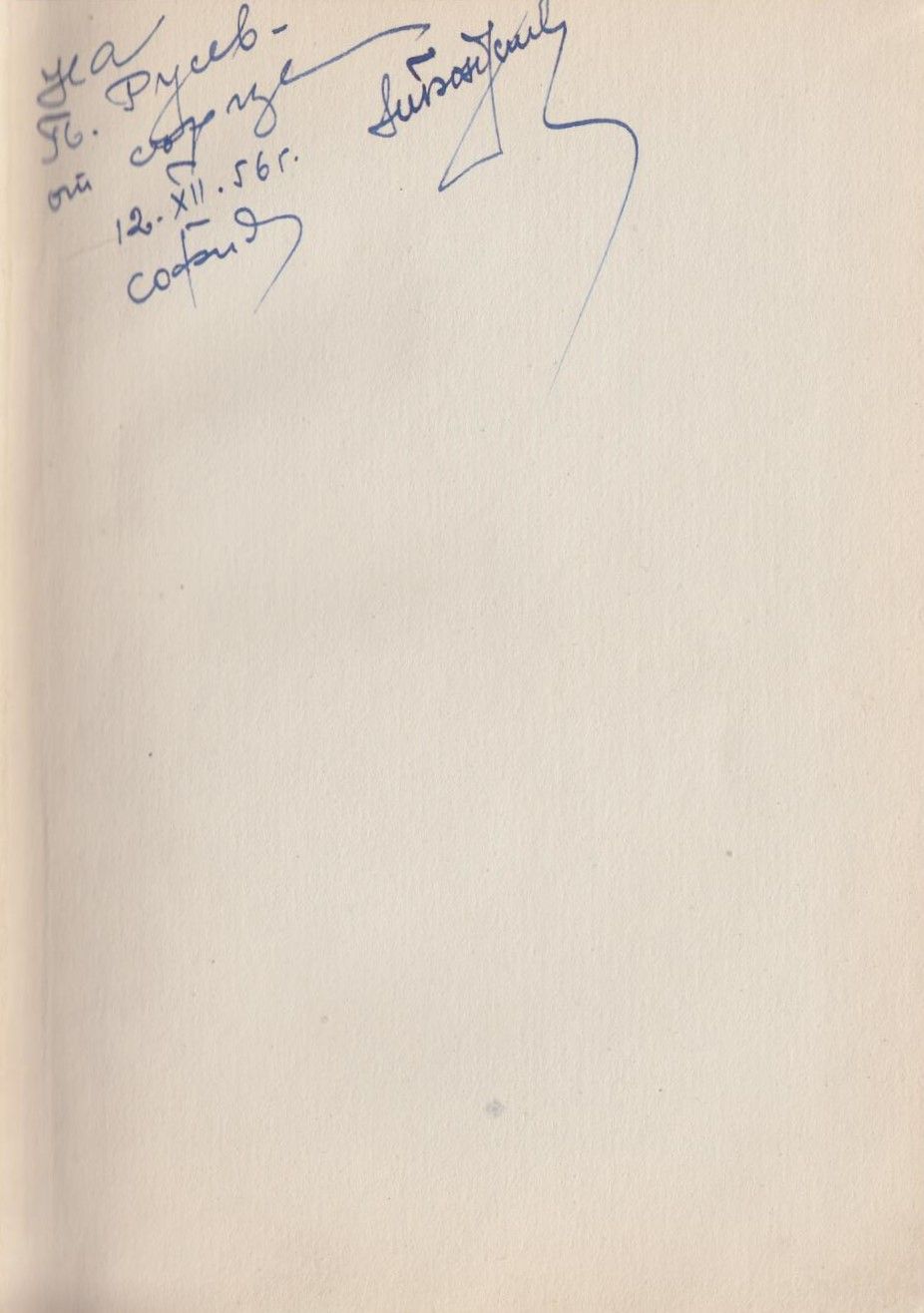 Описание : Автограф на бълг. език: На П. Русев – от сърце, 12.12.56 г.