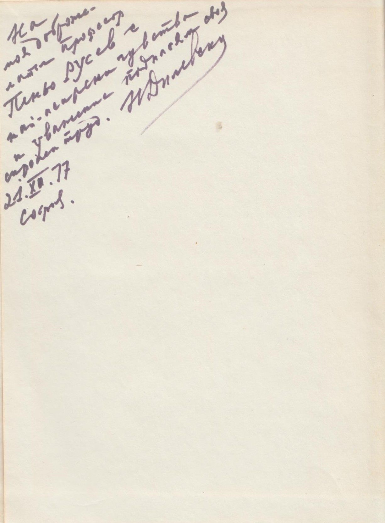 Описание : На моя доброжелател професор Пеньо Русев, с най-искрени чувства и уважения поднасям своя скромен труд. 27.XII.77 София.