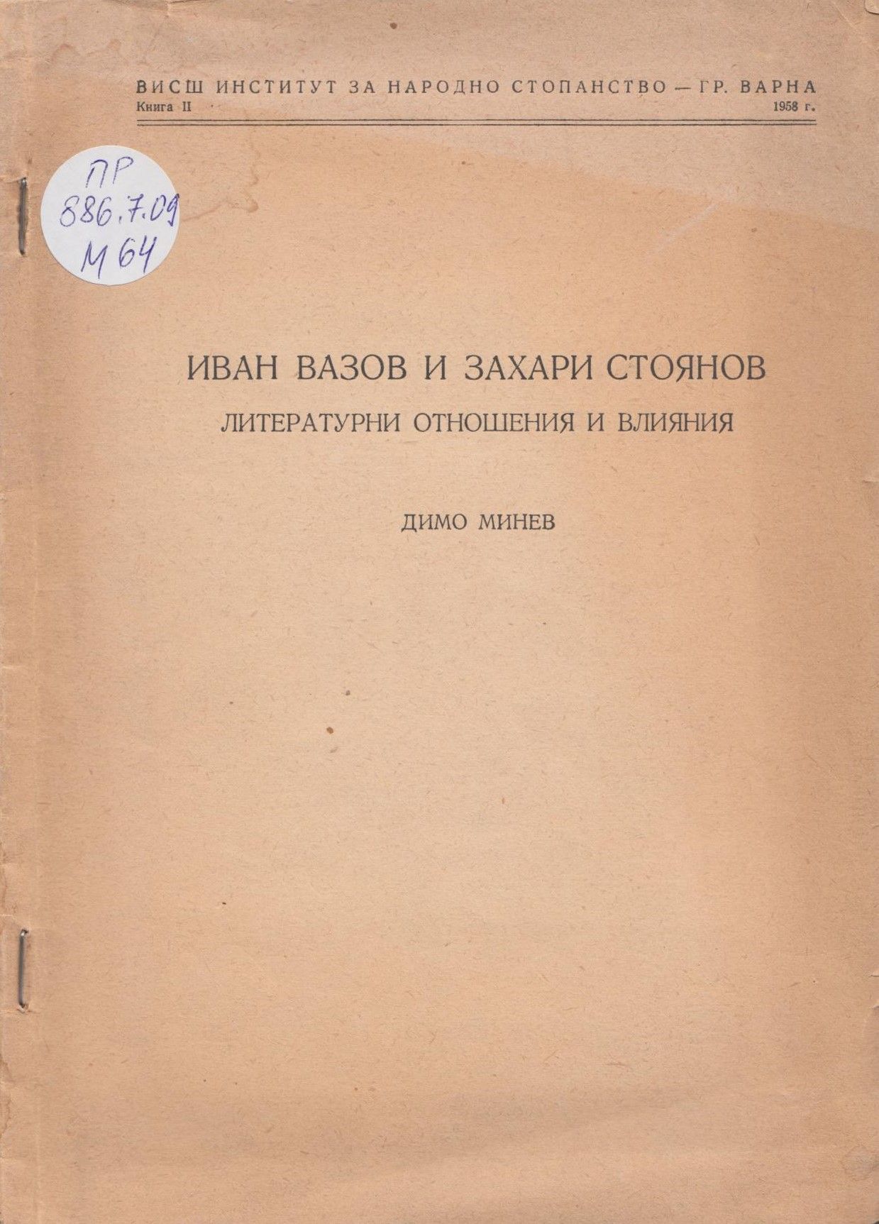 Минев, Димо. Иван Вазов и Захари Стоянов : Литературни отношения и влияния / Димо Минев. - София : Наука и изкуство, 1958. - с. 243-270 ; 21 см.
