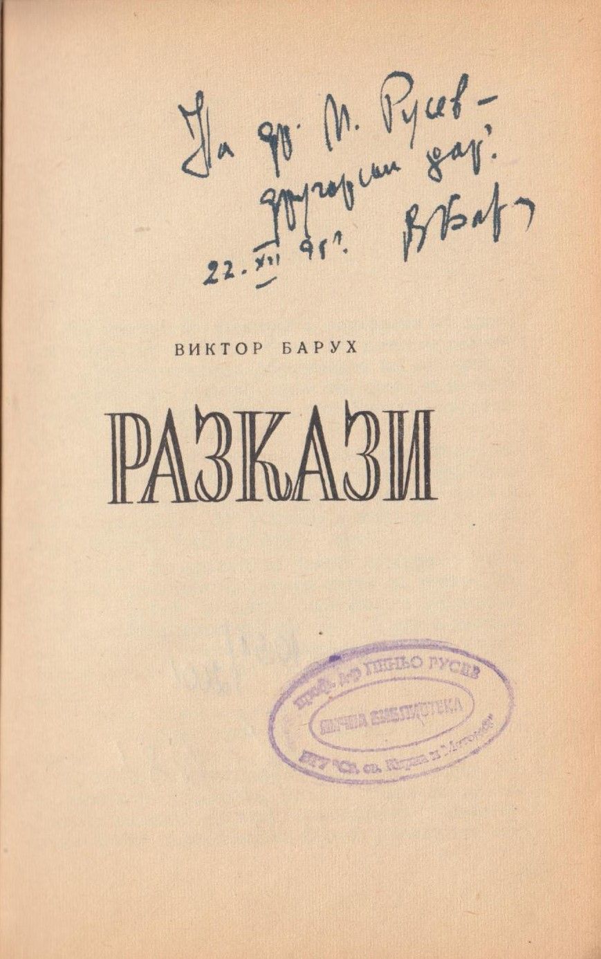 Барух, Виктор Сабат . Разкази / Виктор Барух. - [София] : [Нар. младеж], [1949]. - 96 с. ; 17 см.