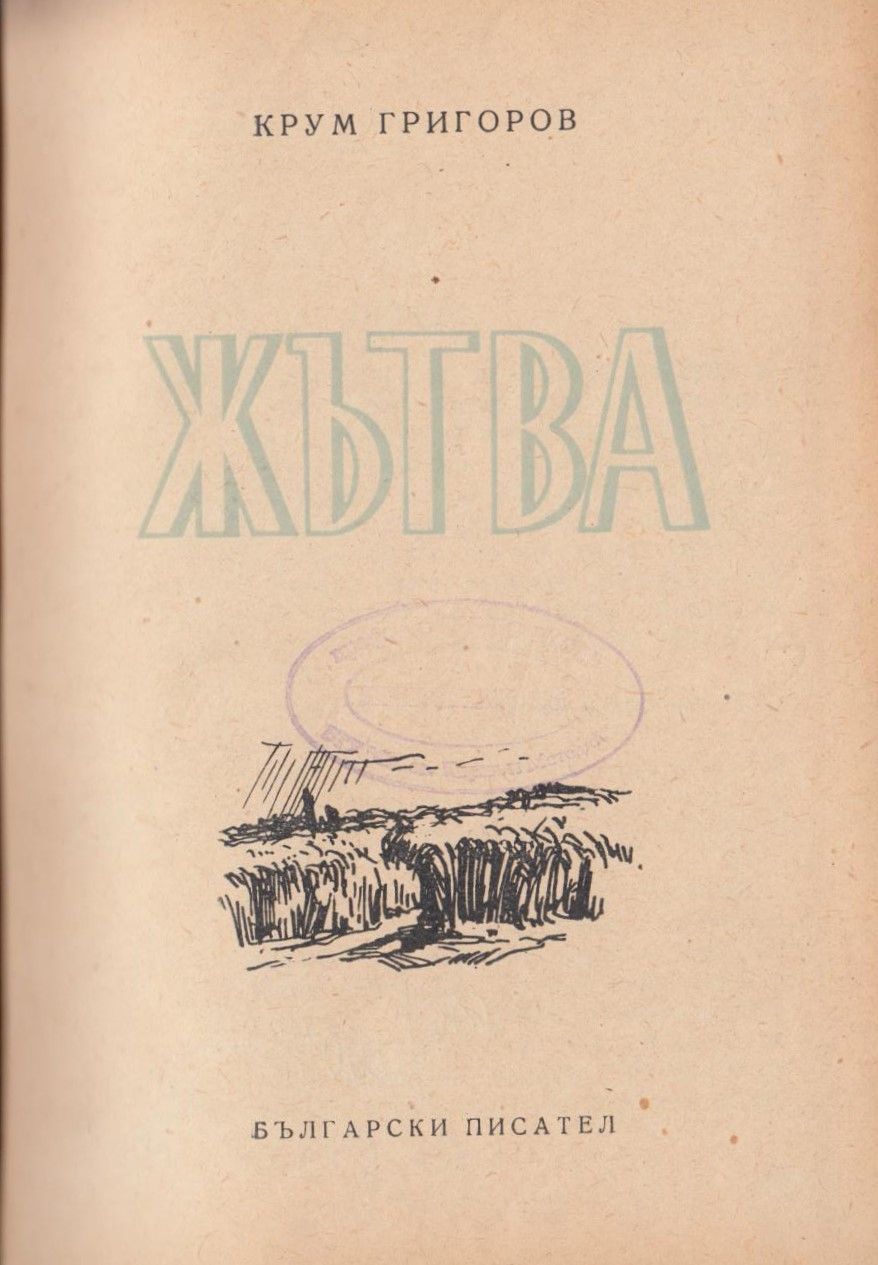 Григоров, Крум. Жътва / Крум Григоров. - [София] : Бълг. писател, [1952]. - 336 с. ; 18 см.