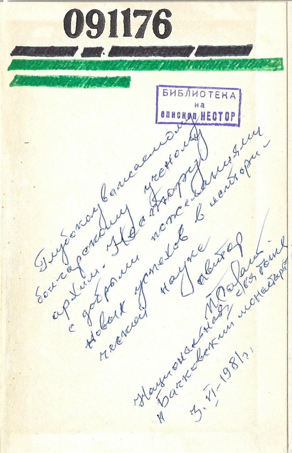Год.издаване : Бачковски манастир, 3 юни, 1981