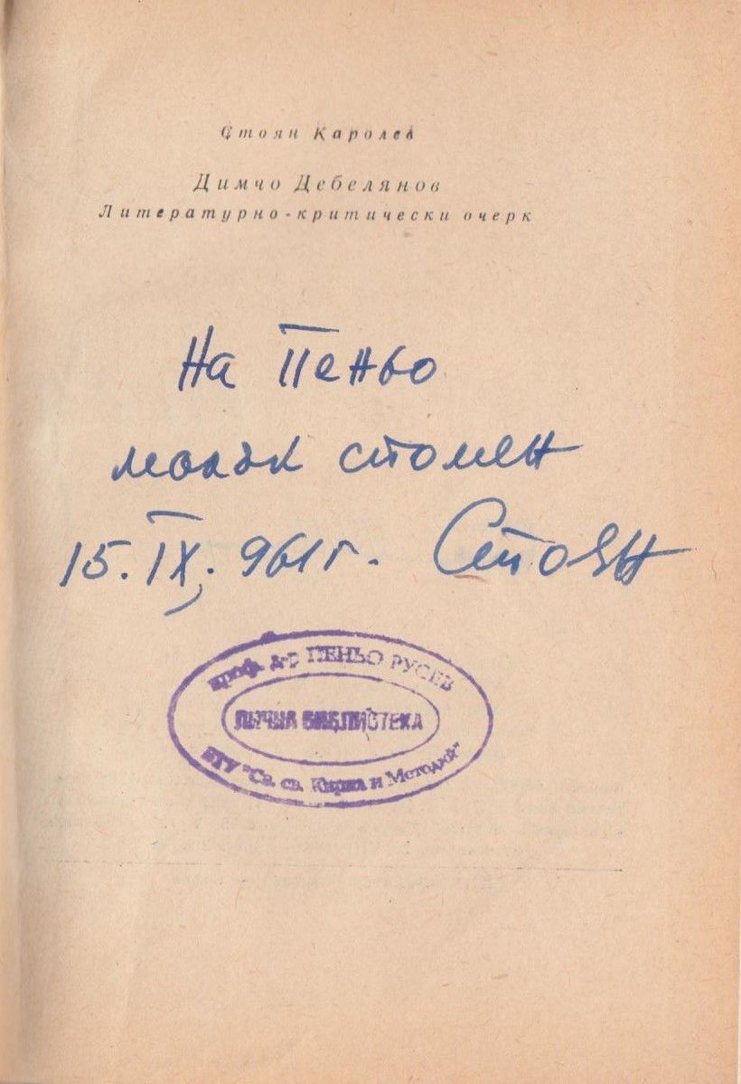 Каролев, Стоян. Димчо Дебелянов : Литературно-критически очерк / Стоян Каролев. - София : Бълг. писател, 1961. - 172 с., 1 л. портр. ; 19 см.