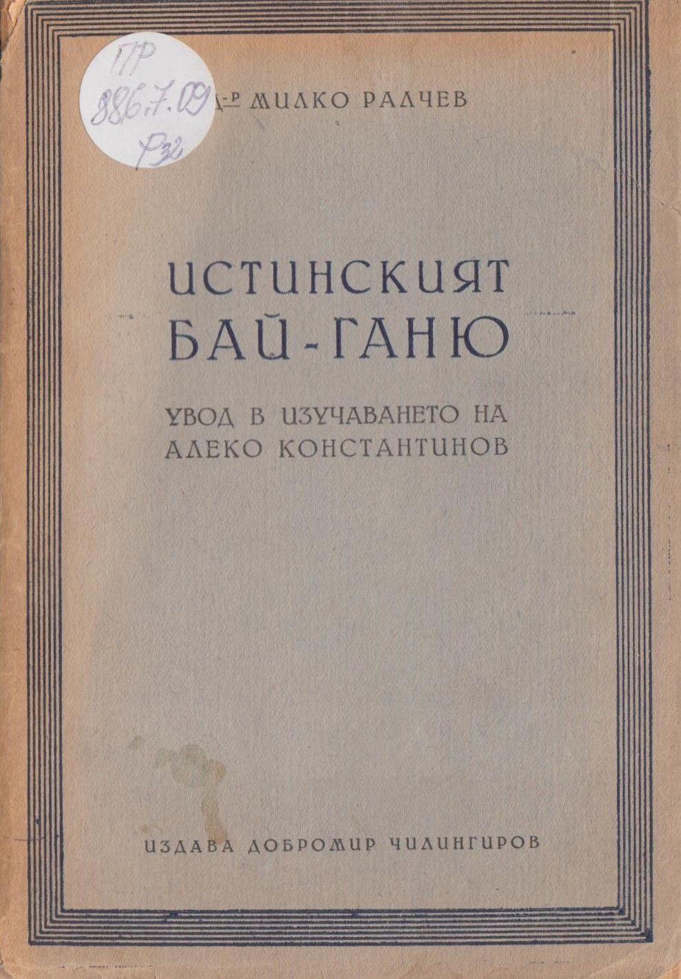 Ралчев, Милко. Истинският Бай Ганю : Увод в изучаването на Алеко Константинов. / Милко Димитров Ралчев. - София : Д. Чилингиров, 1942. - 96 с. ; 19 см.