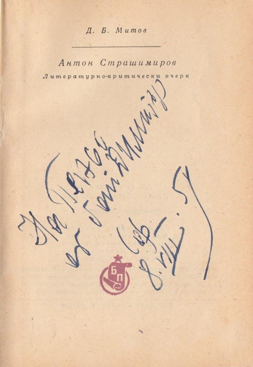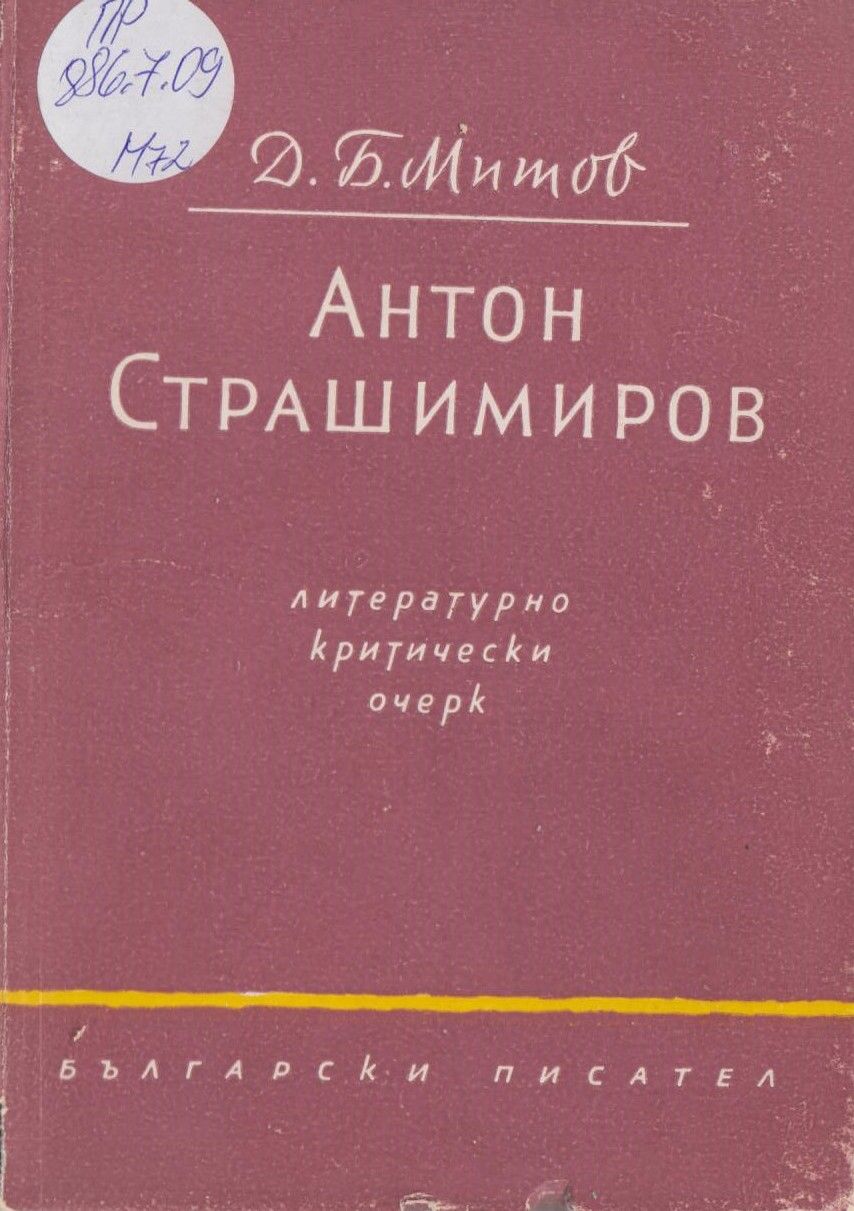 Митов, Д. Б. Антон Страшимиров : Литературно-критически очерк / Д. Б. Митов. - София : Бълг. писател, 1959. - 104 с., 1 л. портр. ; 18 см.