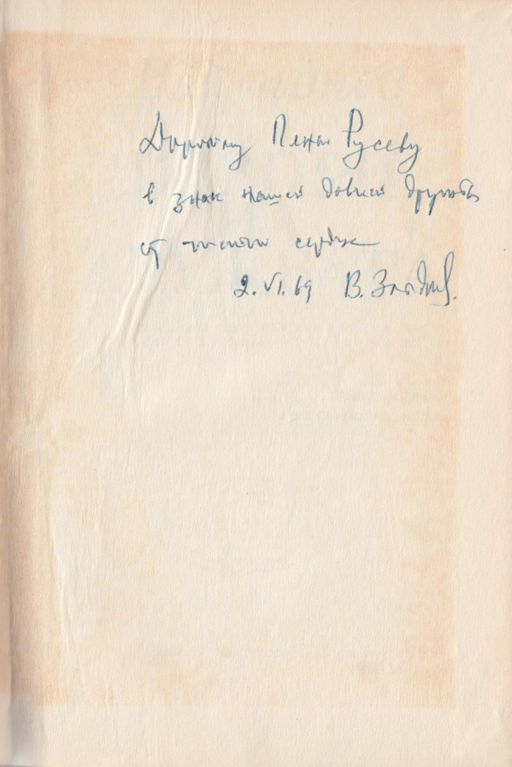 Описание : Автограф на рус. език: Дорогому Пеньо Русеву в знак нашей долгой дружбы от чистом сердце – 2.VI.69