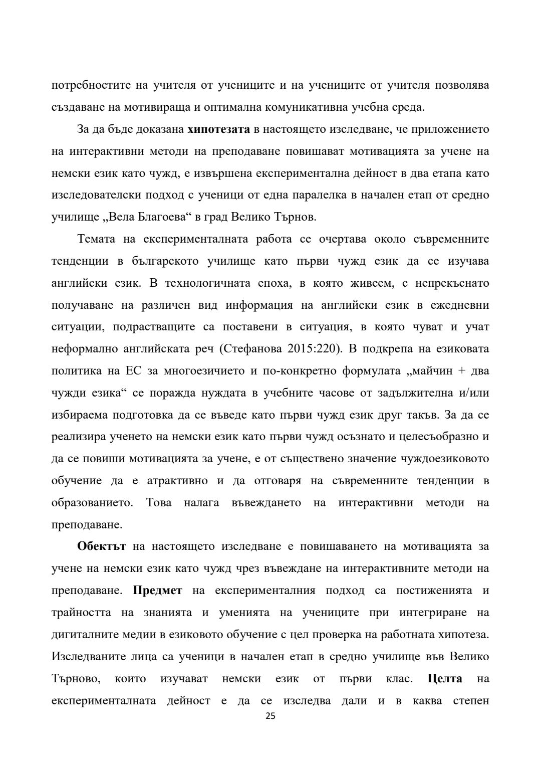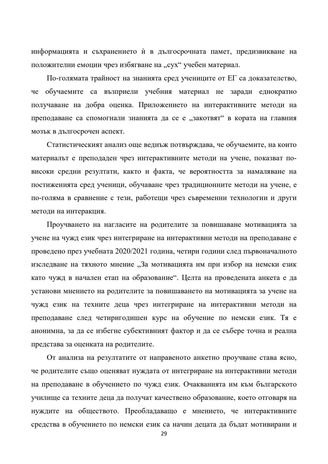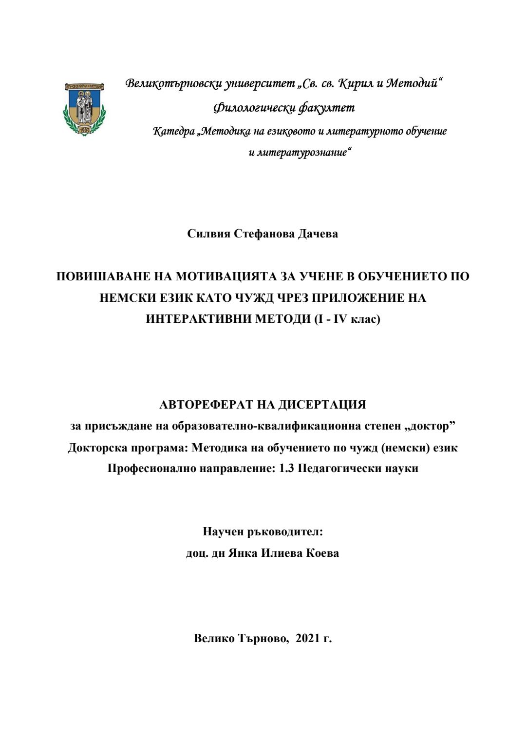 Повишаване на мотивацията за учене в обучението по немски език като чужд чрез приложение на интерактивни методи (I - IV клас) : Автореферат / Силвия Стефанова Дачева ; Науч. ръководител Янка Илиева Коева