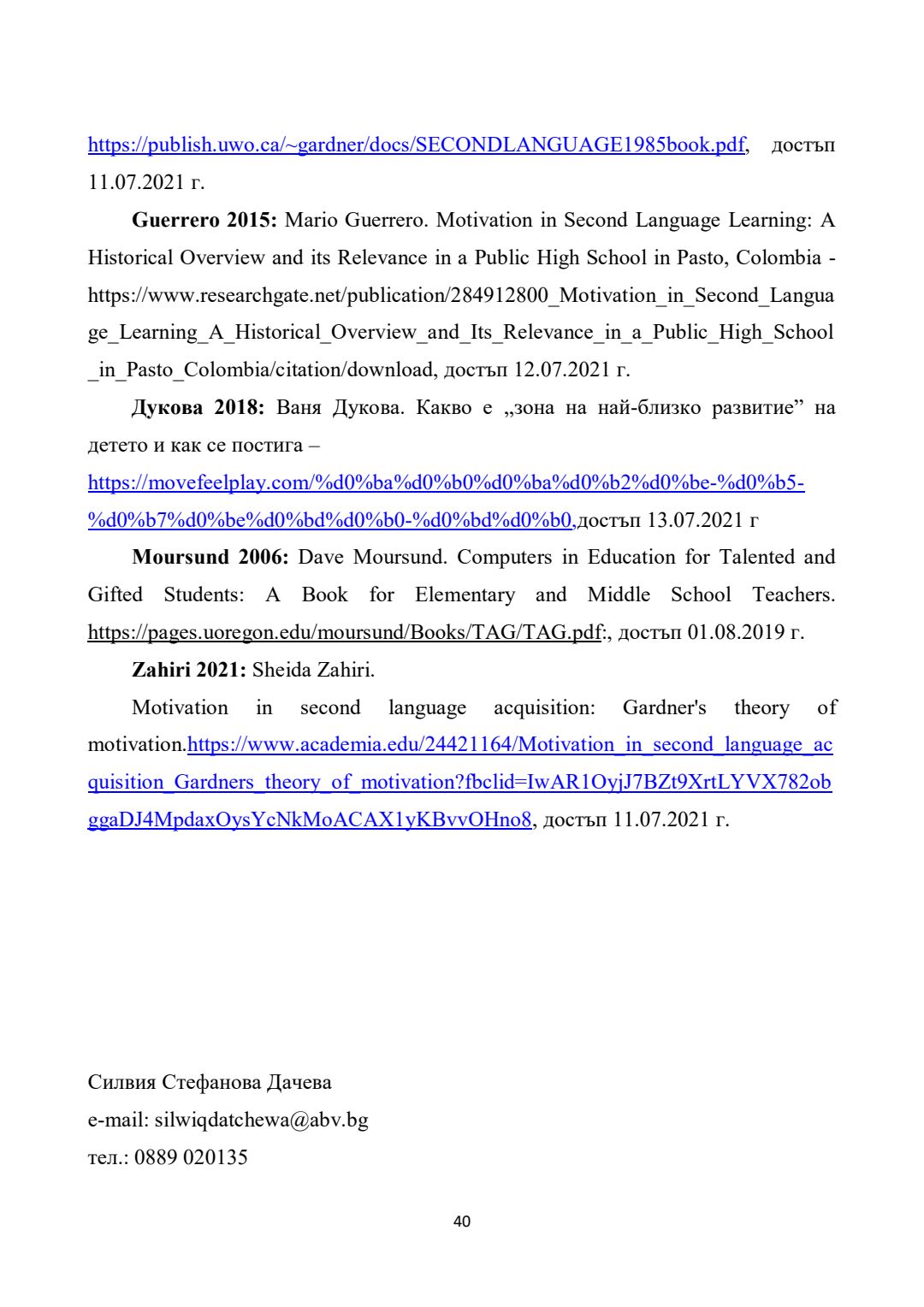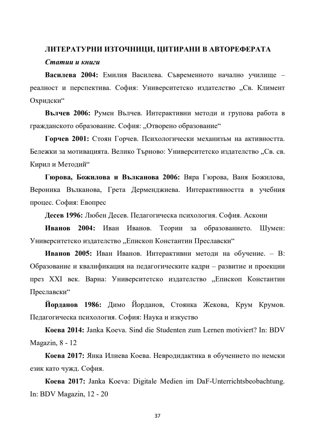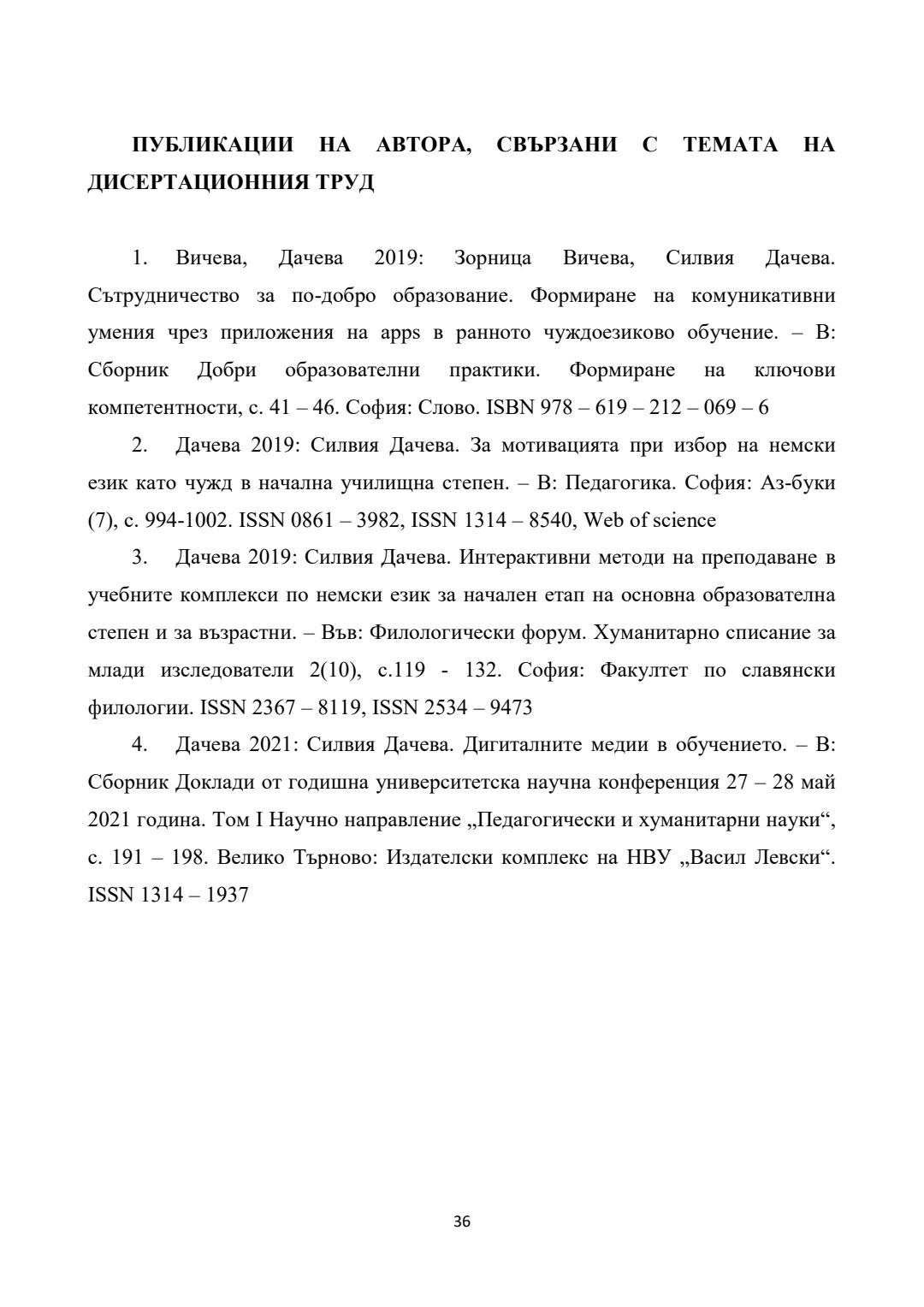 Повишаване на мотивацията за учене в обучението по немски език като чужд чрез приложение на интерактивни методи (I - IV клас) : Автореферат / Силвия Стефанова Дачева ; Науч. ръководител Янка Илиева Коева